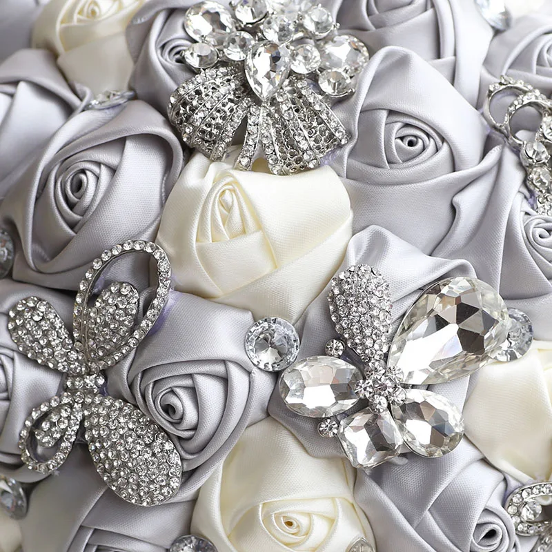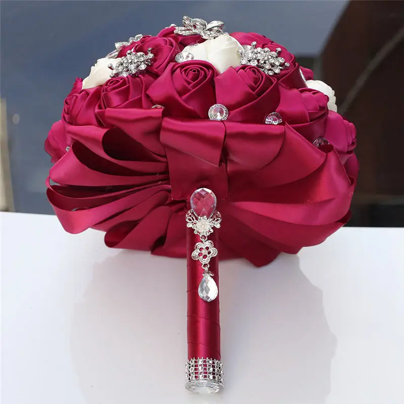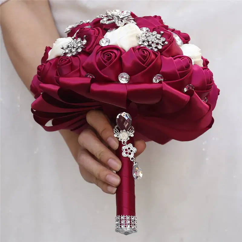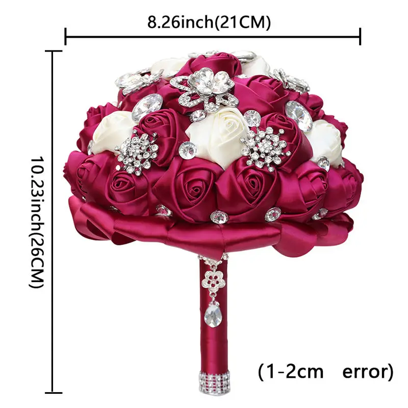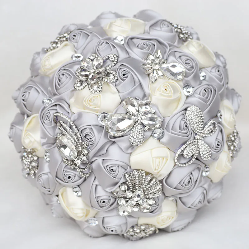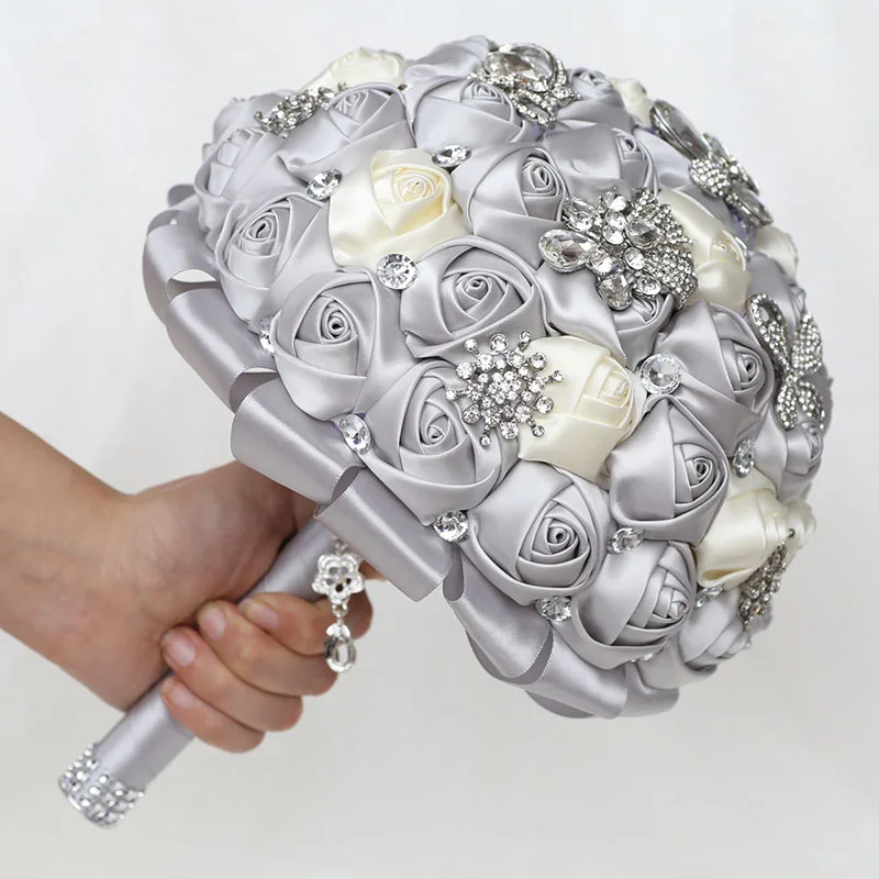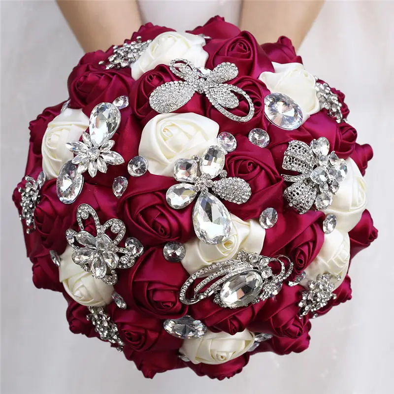 Свадебный букет из фиолетовых атласных роз под соус, свадебная брошь цвета слоновой кости, свадебные стразы, букеты для подружки невесты, W704
