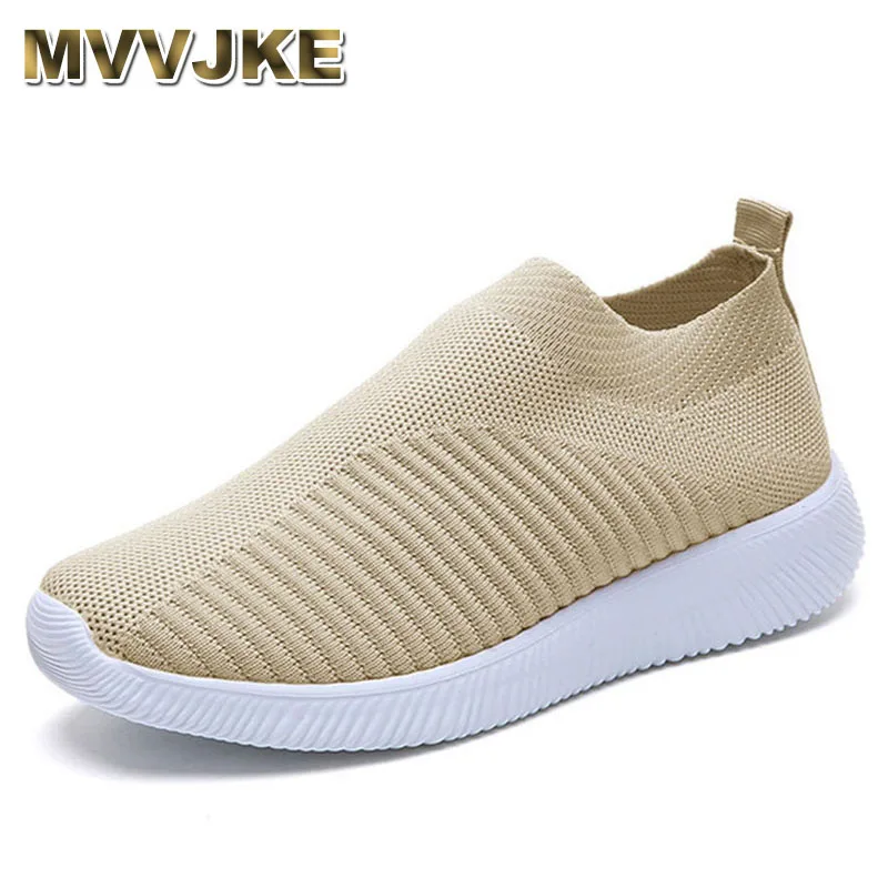 Женские кроссовки без шнуровки mvvjkeосенние, мягкие, сетчатые, вязаные, Вулканизированная подошва, повседневная обувь на плоской подошве