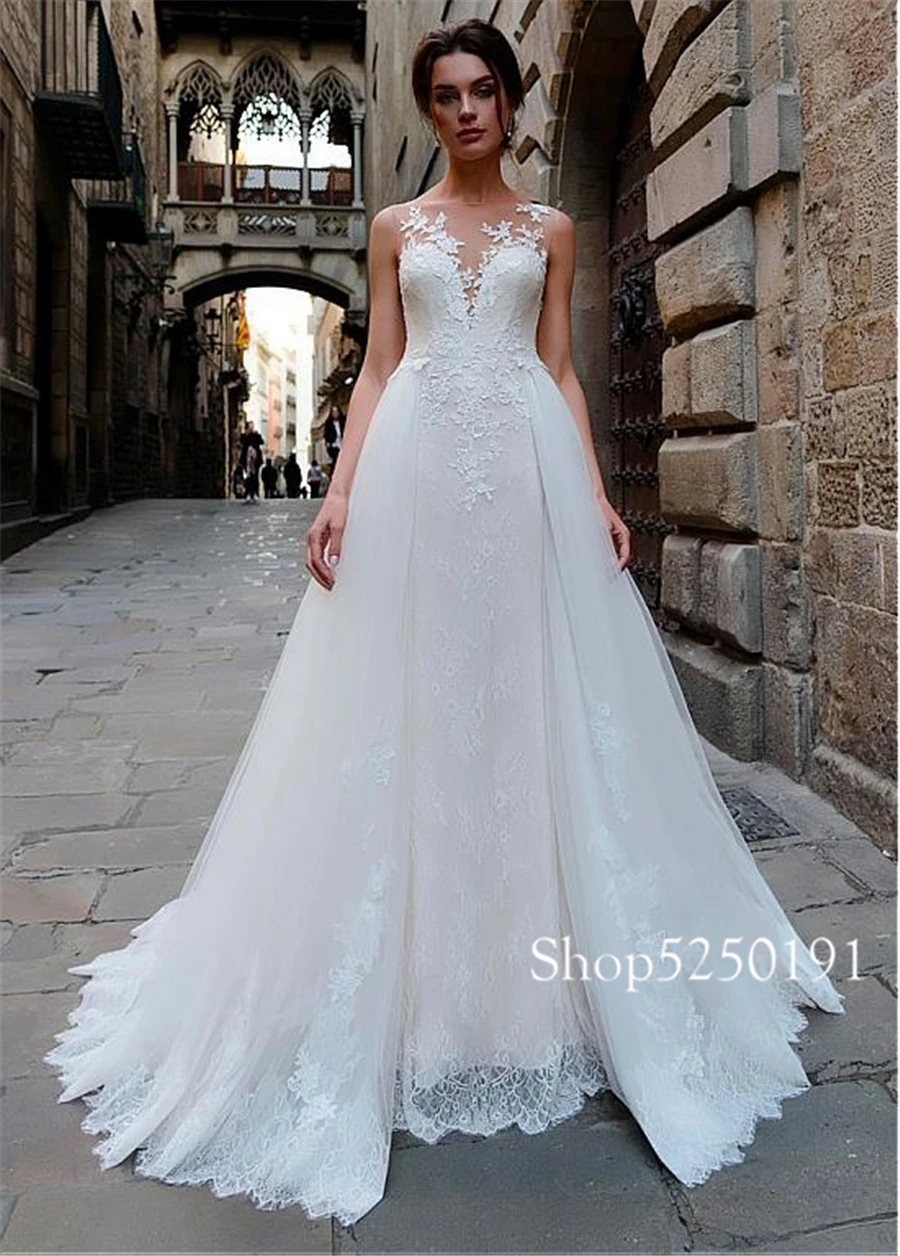 Потрясающее Тюлевое свадебное платье 2 в 1 с вырезом Лодочка и кружевной аппликацией, свадебное платье из двух предметов со съемной юбкой