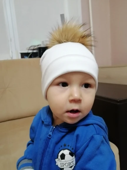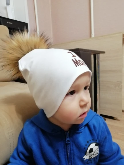 Хорошенькая, маленькая шапочка. Ровненькая, мягонькая. Помпон канешно оставляет желает лучшего, лезет очень, пока крепила кнопку вся шапка в ворсинках. Думаю будем использовать просто шапочку без него. Благо там несильно пришита заклепка, можно аккуратно убрать. Заказ пришел быстро, к продавцу притензий нет, его рекомендую)