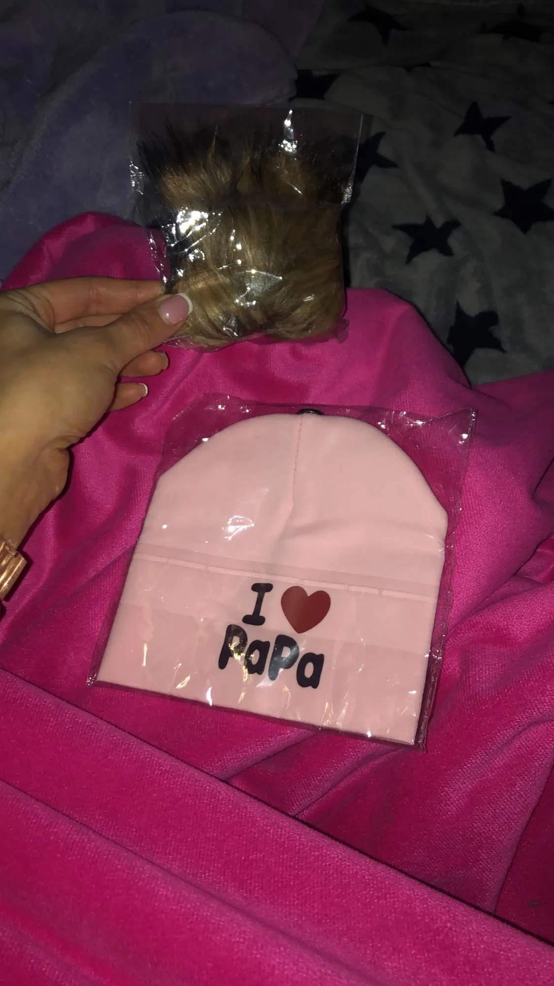Симпатичная шапка, пунпон и шапка в разных пакетах пришли