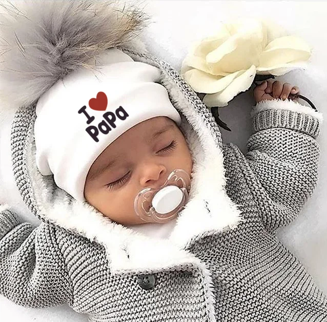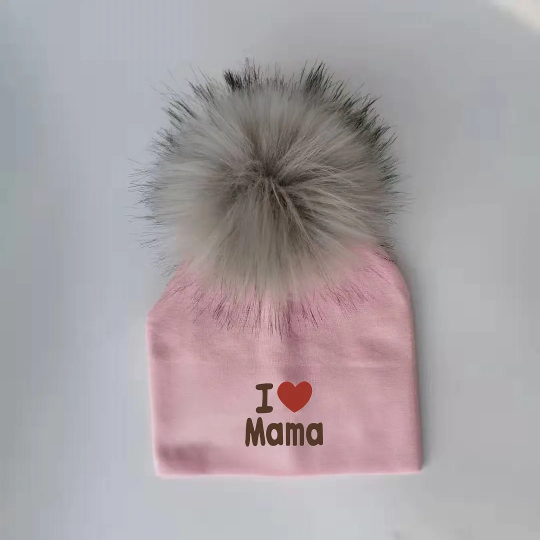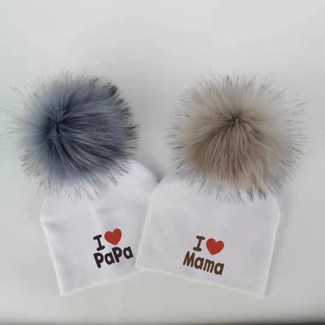 Шапка для новорожденных девочек, из хлопка, с помпоном, реквизит для фотосессий, детская шапочка, шапочка для мальчиков и девочек, шапочка для младенцев, люблю мама папа