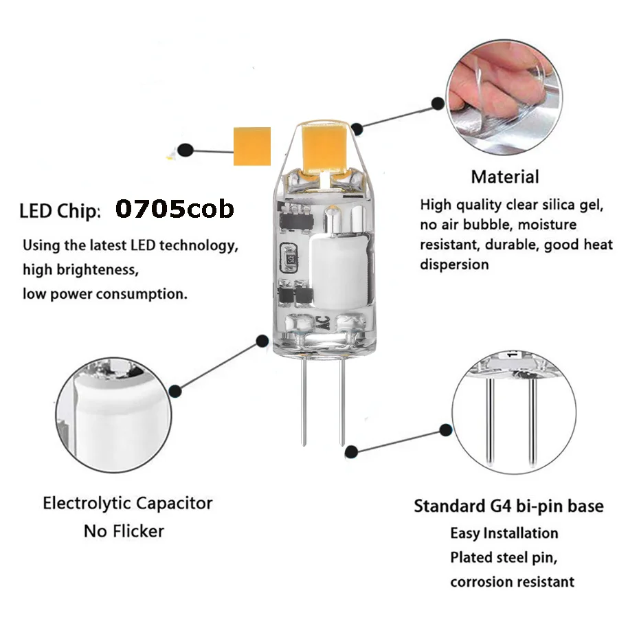 Двухконтактная Светодиодная лампа G4, ее можно легко установить по сравнению с обычными галогенными лампами.