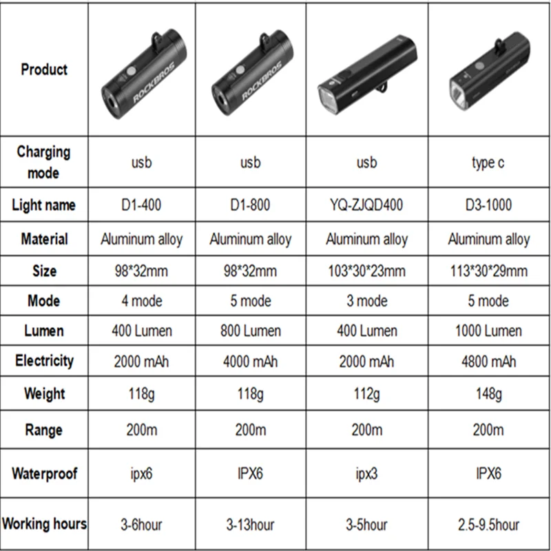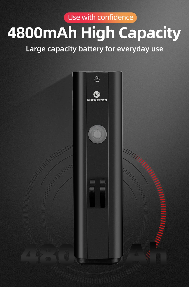 Велосипесветильник передний светильник ROCKBROS, 4800 лм, светодиодный мАч, зарядка через USB