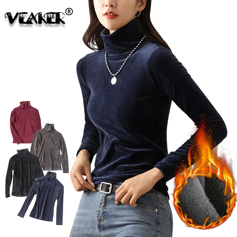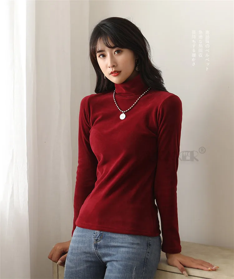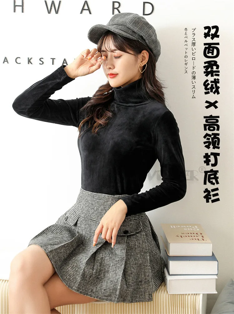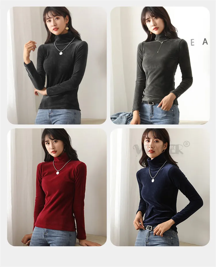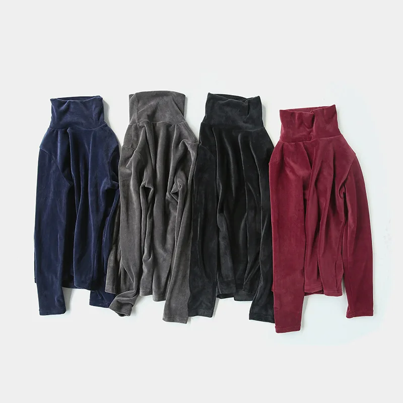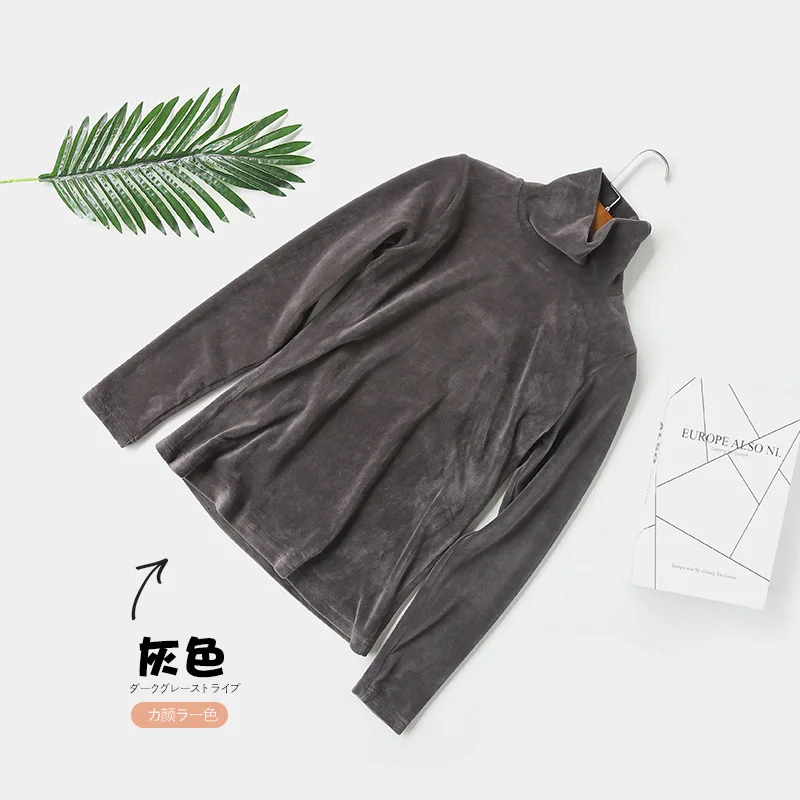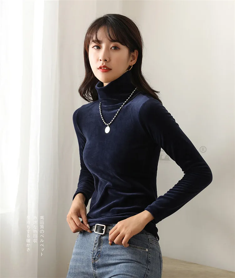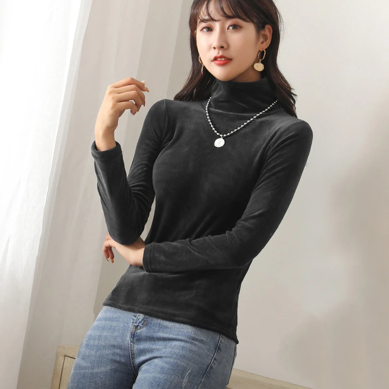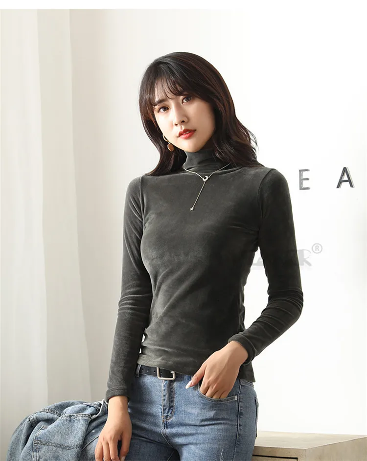 Бархатная водолазка, женская зимняя футболка 2019, топы, футболка болотного цвета с длинным рукавом, теплая Толстая бархатная футболка, женские осенние футболки, топы