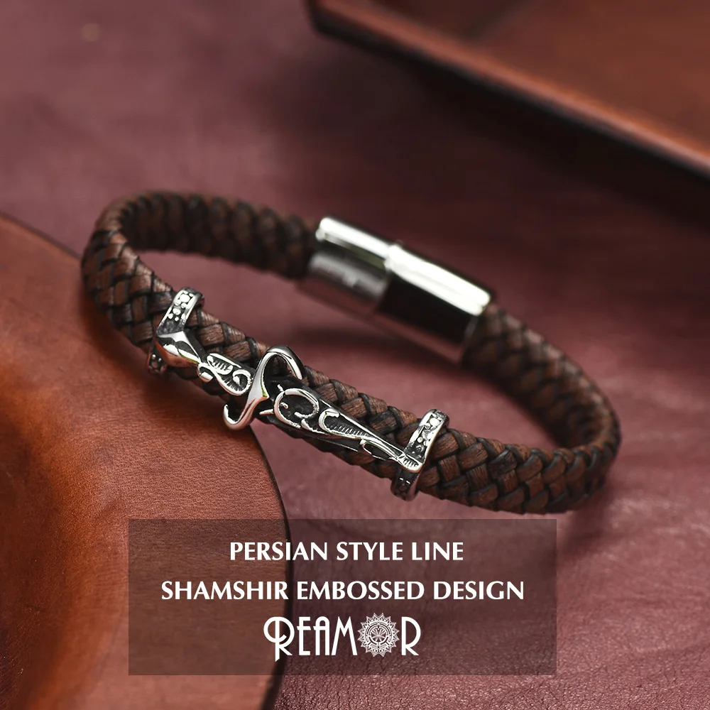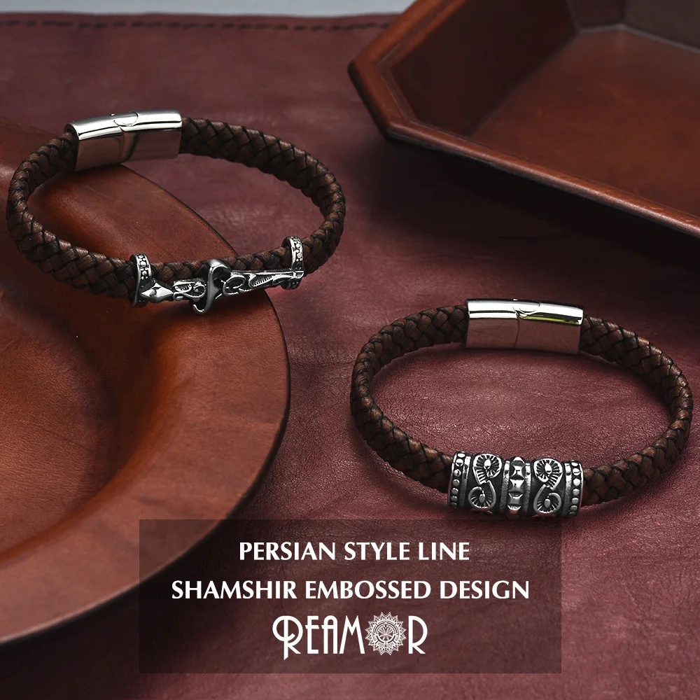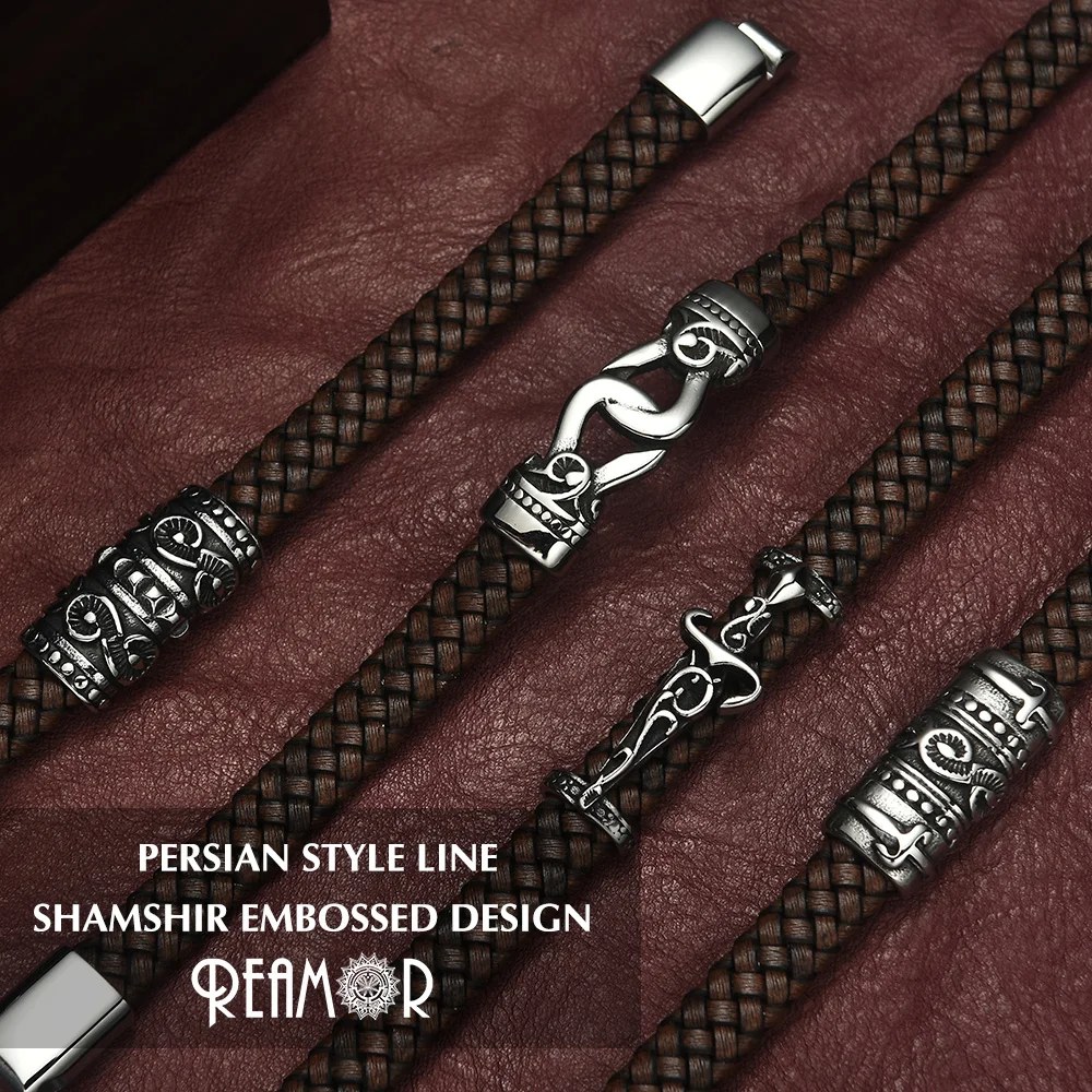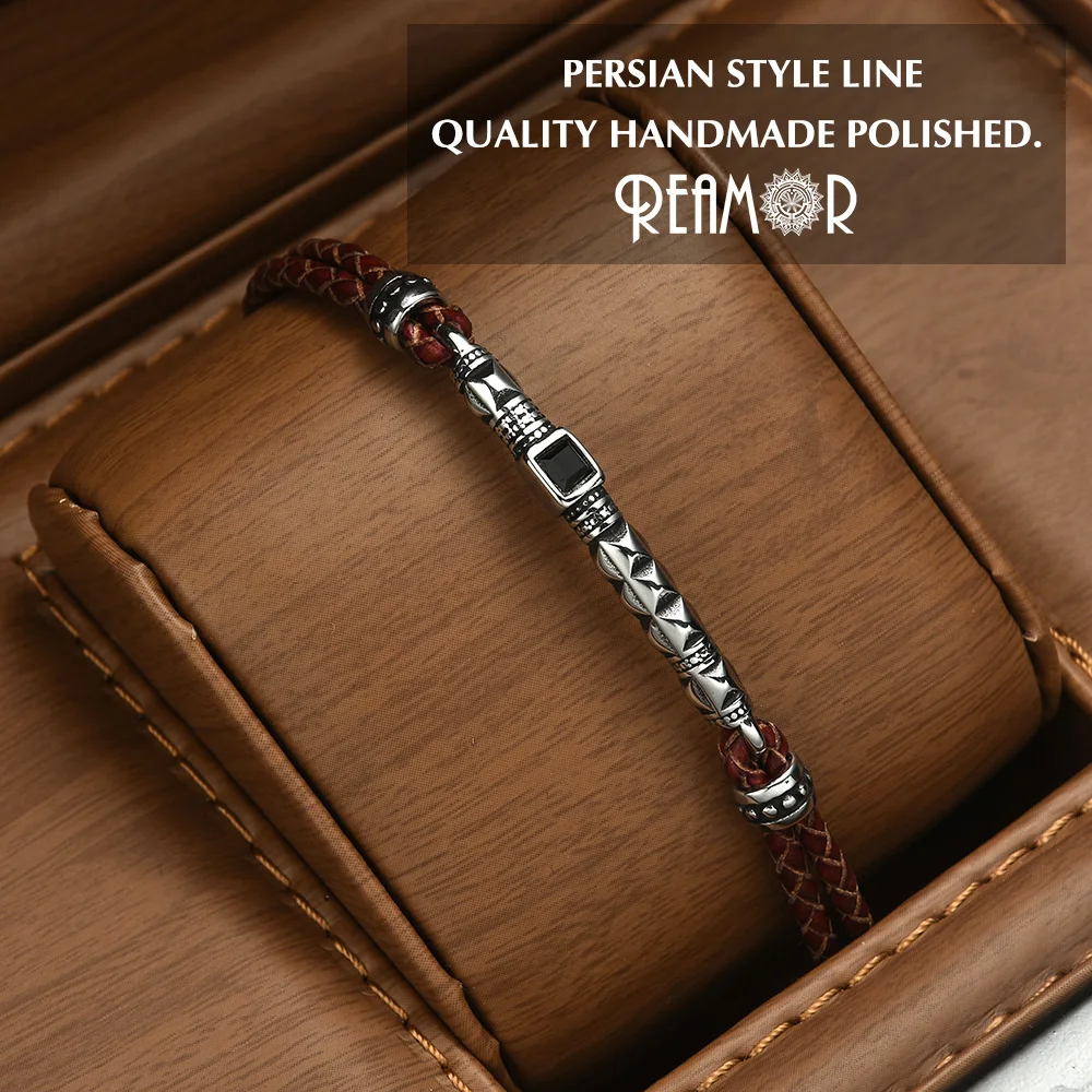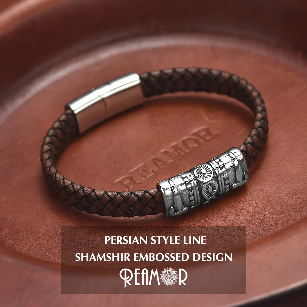 Роскошный браслет REAMOR из персидской воловьей кожи с фианитом, с узлом, спиралью, магнитной застежкой из нержавеющей стали, коричневый