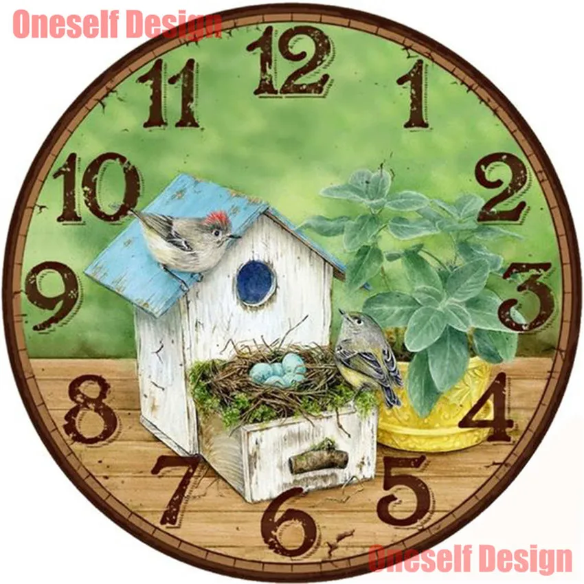 Алмазная 5d-картина с часами, мозаика с цветами и птицами, распрода...