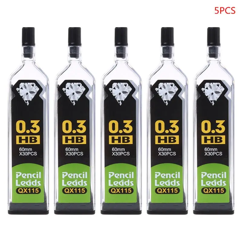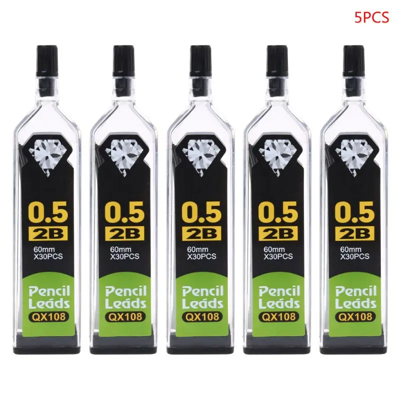 Грифель сменный HB 2B для автоматических механических карандашей, 0,30,50,70,9 мм, школьные канцелярские принадлежности, W91A, 5 шт.