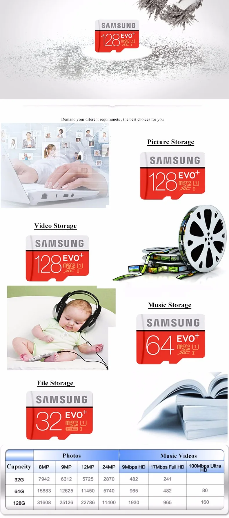 Карта памяти microSD SAMSUNG, 256 ГБ, 32 ГБ, 64 ГБ, 128 ГБ, 512 ГБ, SDHC, SDXC, марка EVO+, класс 10, C10, UHS, карты TF и SD