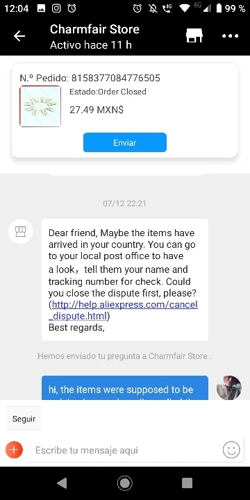 В первый раз, когда это происходит, товар никогда не прибыл, и они отказались вернуть деньги, хотя продавец настаивал на том, чтобы я закрыл спор и сделал догадки о местоположении товара, страшный сервис, Я оставляю 1 звезду, потому что не могу войти в минус 5 из-за ужасающего опыта, не покупайте здесь парней