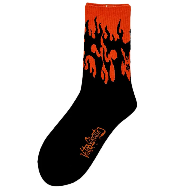 Носки мужские хлопковые, в стиле хип-хоп, с рисунком пламени