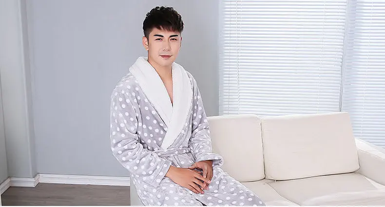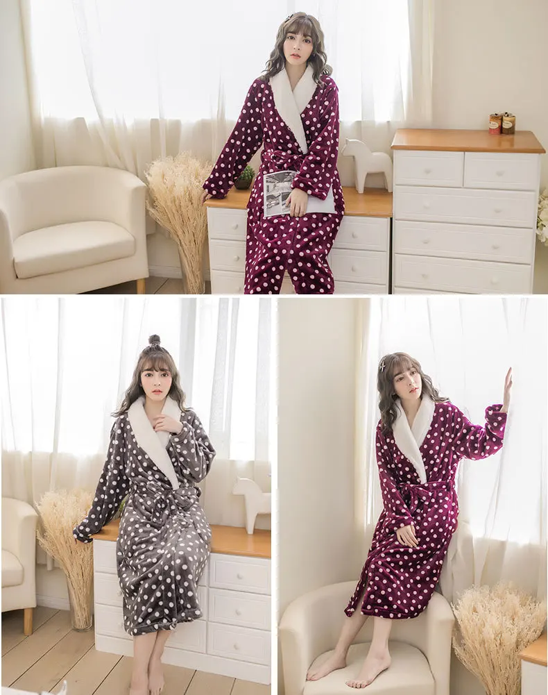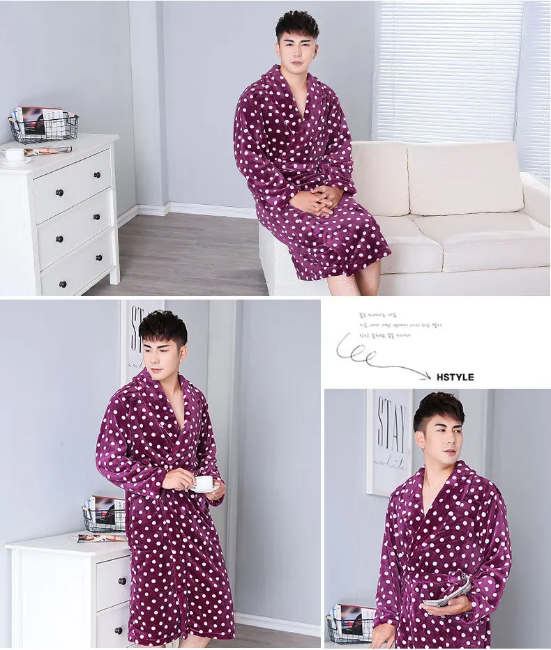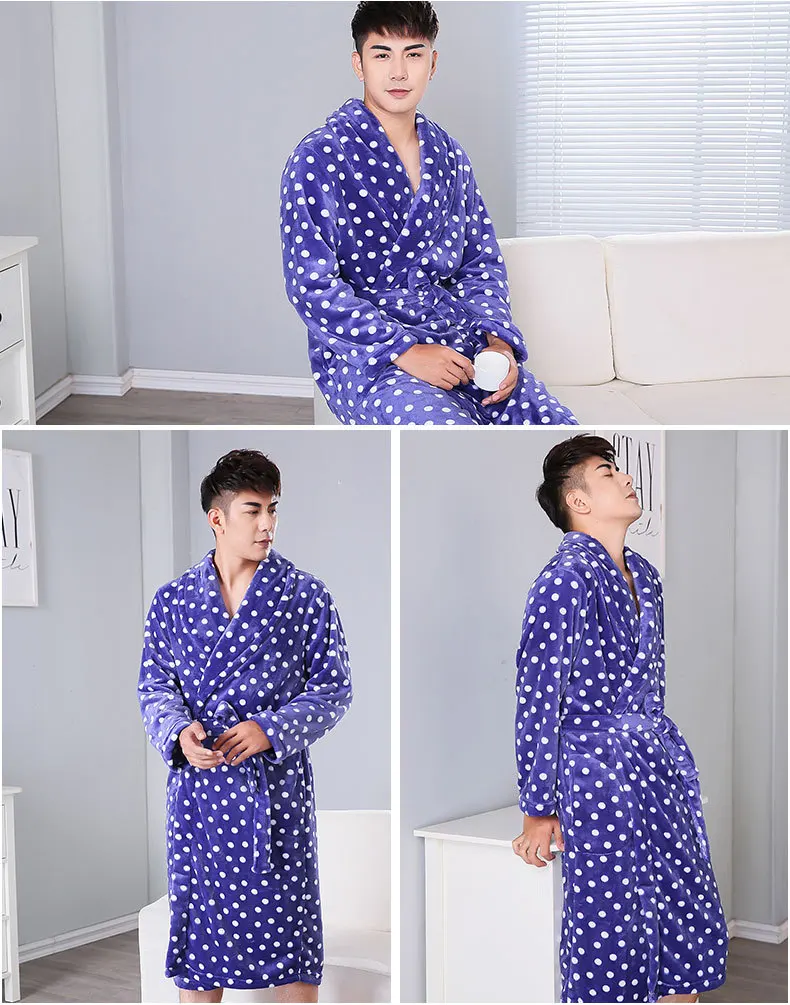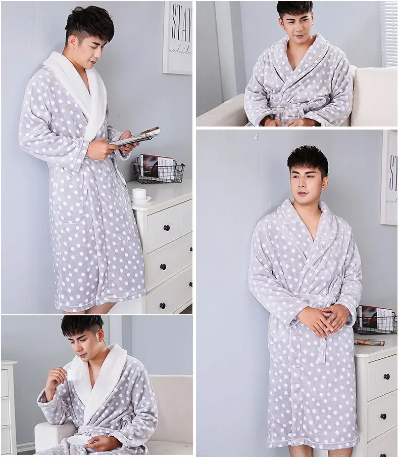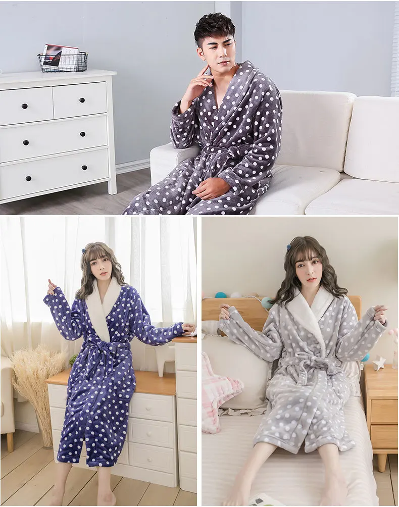 Фланелевая утолщенная Ночная рубашка в горошек для пар, Женская Коралловая рубашка, мужской Халат, Пижама, Халат, домашний пеньюар, Женский Халат