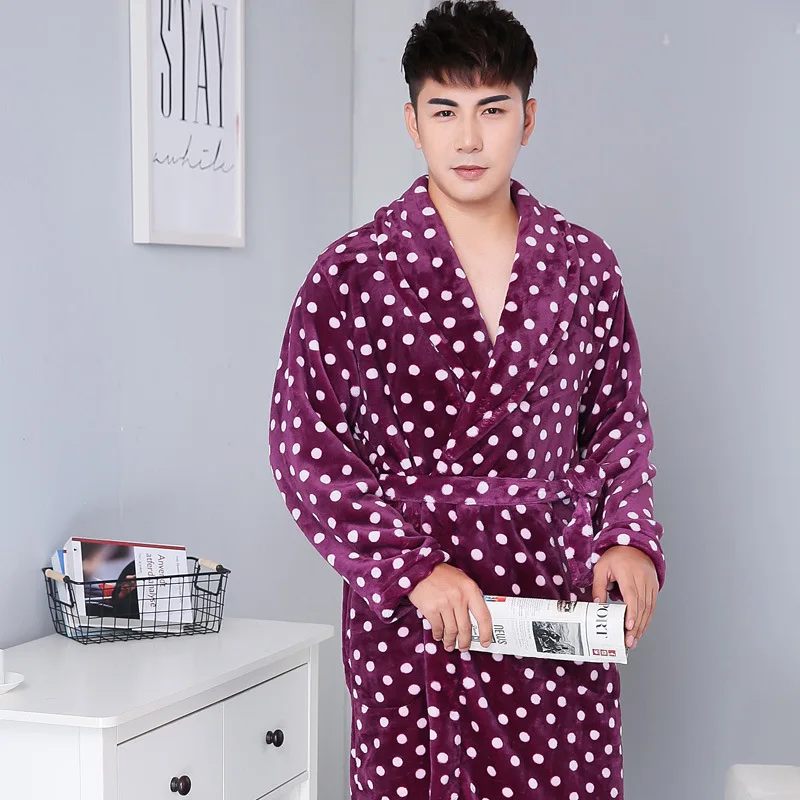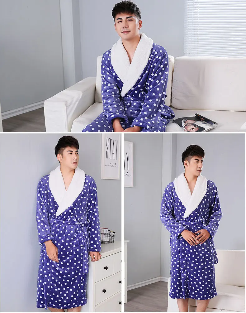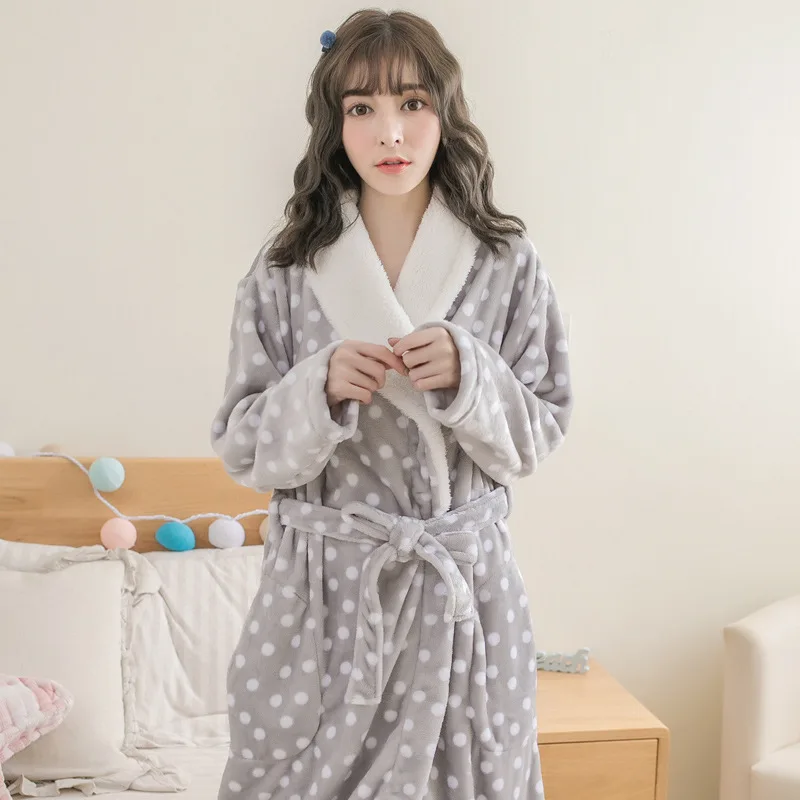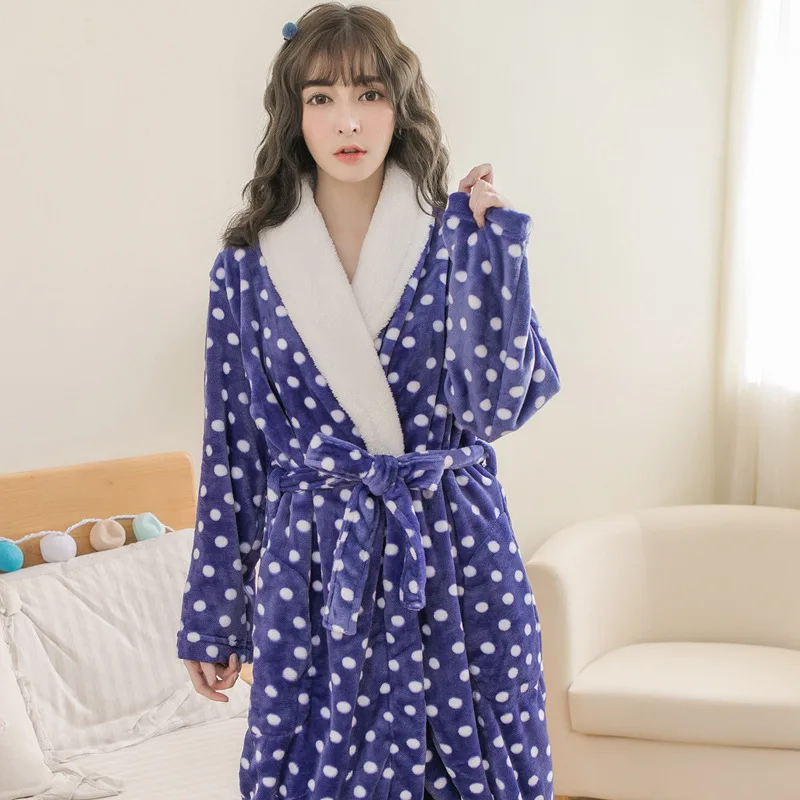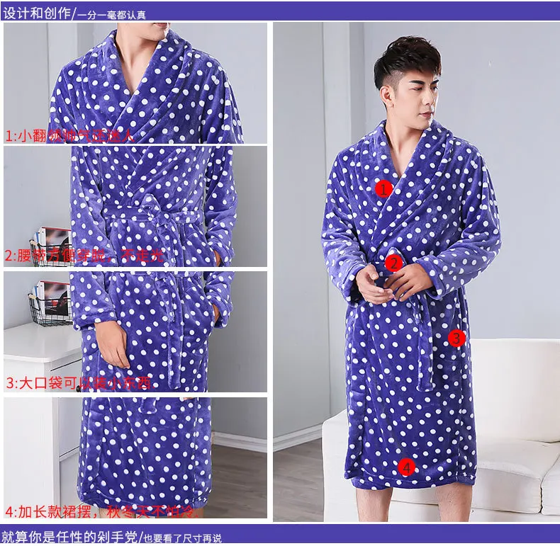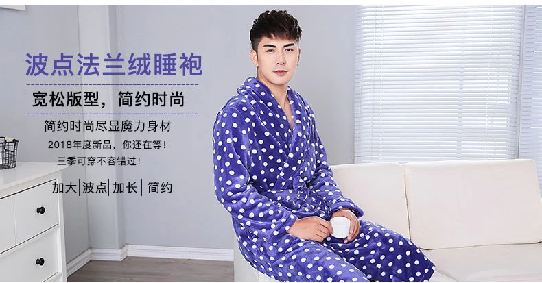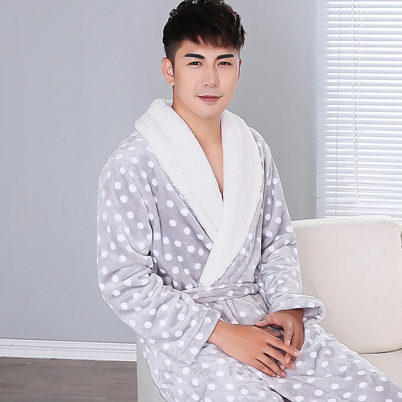 Фланелевая утолщенная Ночная рубашка в горошек для пар, Женская Коралловая рубашка, мужской Халат, Пижама, Халат, домашний пеньюар, Женский Халат