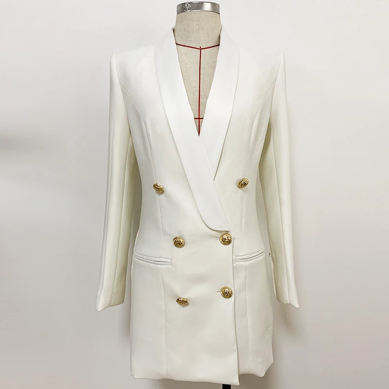 Женский двубортный Блейзер на пуговицах, Длинный блейзер из сатина с воротником-шалью и львиными пуговицами, 2022