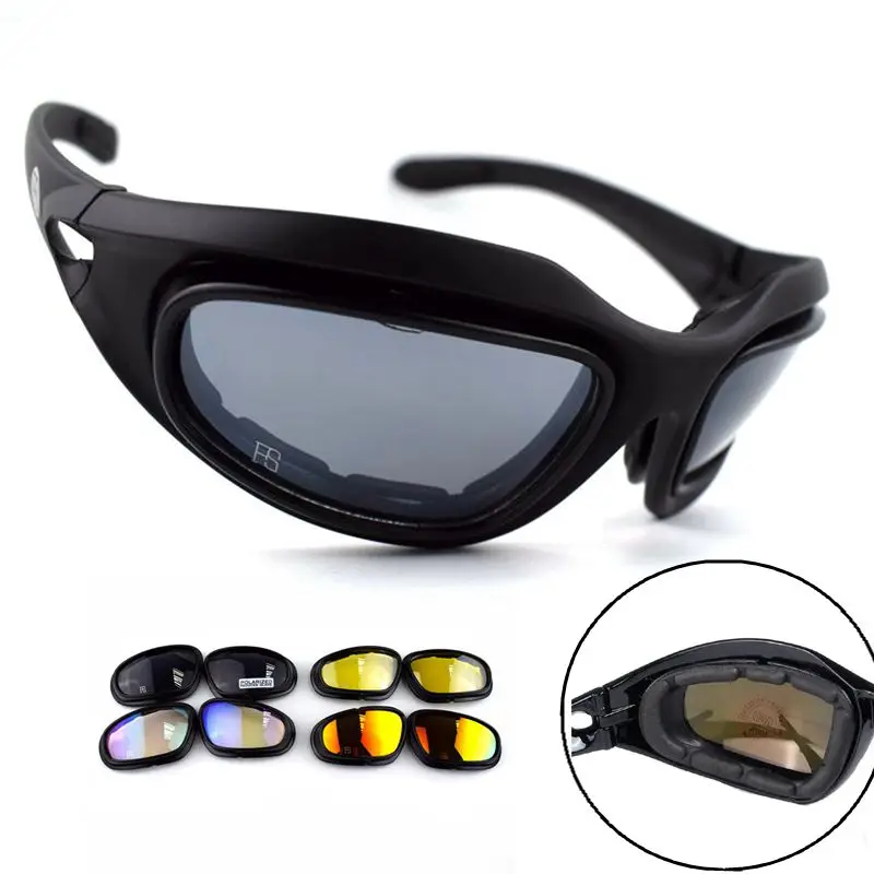 Очки солнцезащитные C5 мужские тактические, Поляризованные, в стиле милитари, с 4 линзами, для военных игр, походов, рыбалки