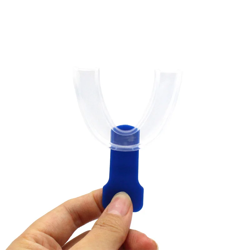 1. Вставьте синюю ручку в отверстие для дыхания лотка, затем поместите в контейнер 2. Поместите горячую воду (около 70-80 градусов C) в контейнер, пока лоток не будет погружен 3. Держите поднос в воде около 15-25 секунд, Затем выньте лоток с помощью ручки вставки 4. Аккуратно стряхните излишки воды и вставьте лоток для рта в рот. Отрегулируйте лоток в удобное положение, а затем прикусывайте, используя пальцы к лотку вокруг передней и боковой стороны, чтобы сделать хорошую форму ваших зубов и форма жевательной резинки. 5. Удалите лоток, после того как вы почувствуете, что все ваши зубы оставили на нем хорошие впечатления. 6. Поместите форменный лоток в воду, чтобы зафиксировать анти-храп лоток, и выньте вставную ручку.