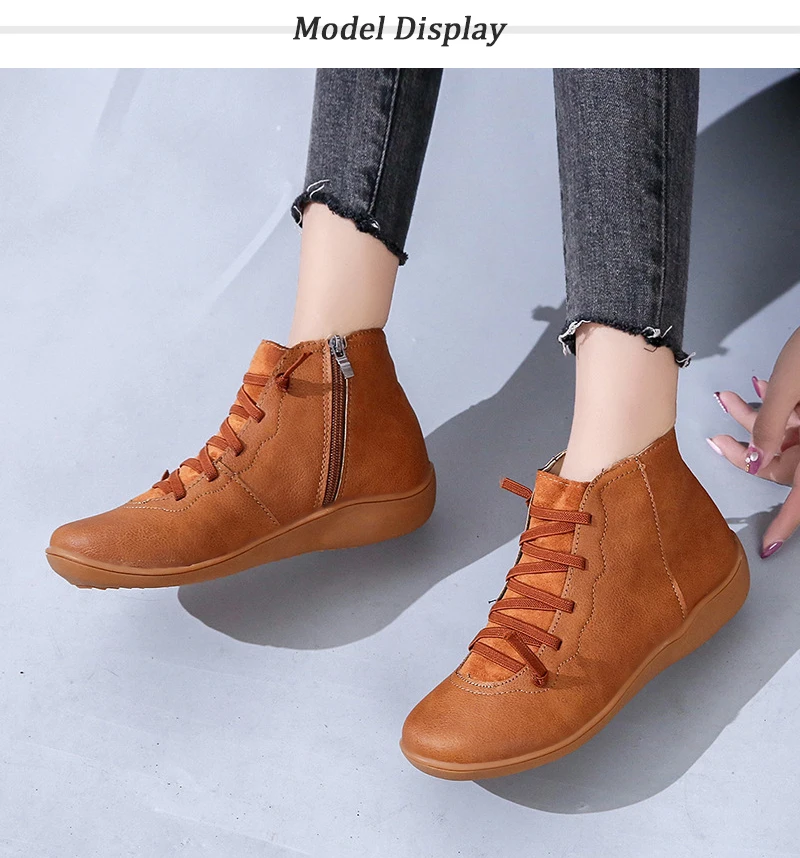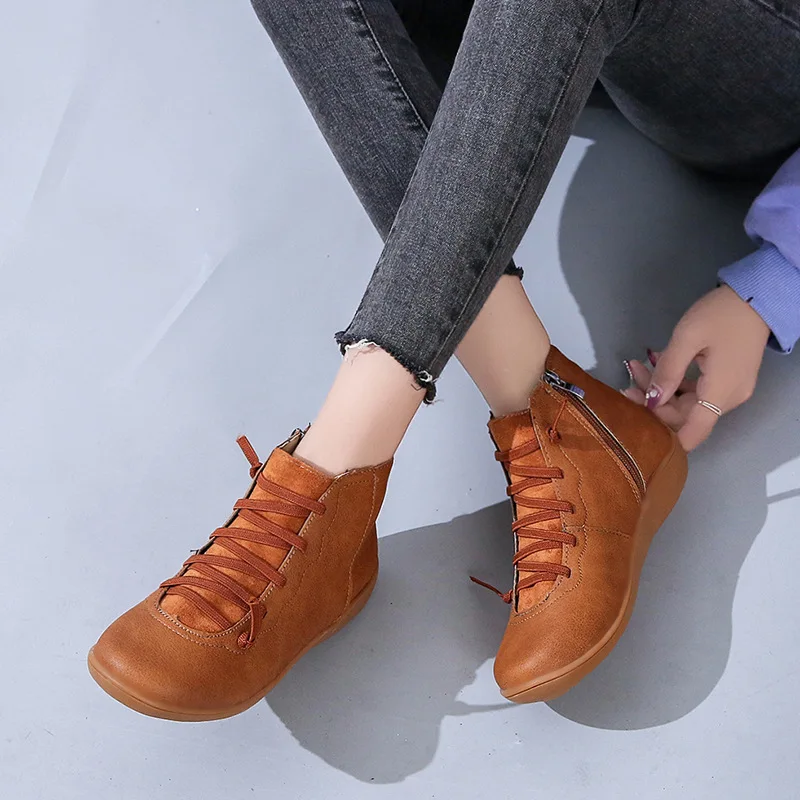 Женские повседневные кожаные ботинки на плоской подошве в стиле ретро со шнуровкой ботинки на молнии с круглым носком