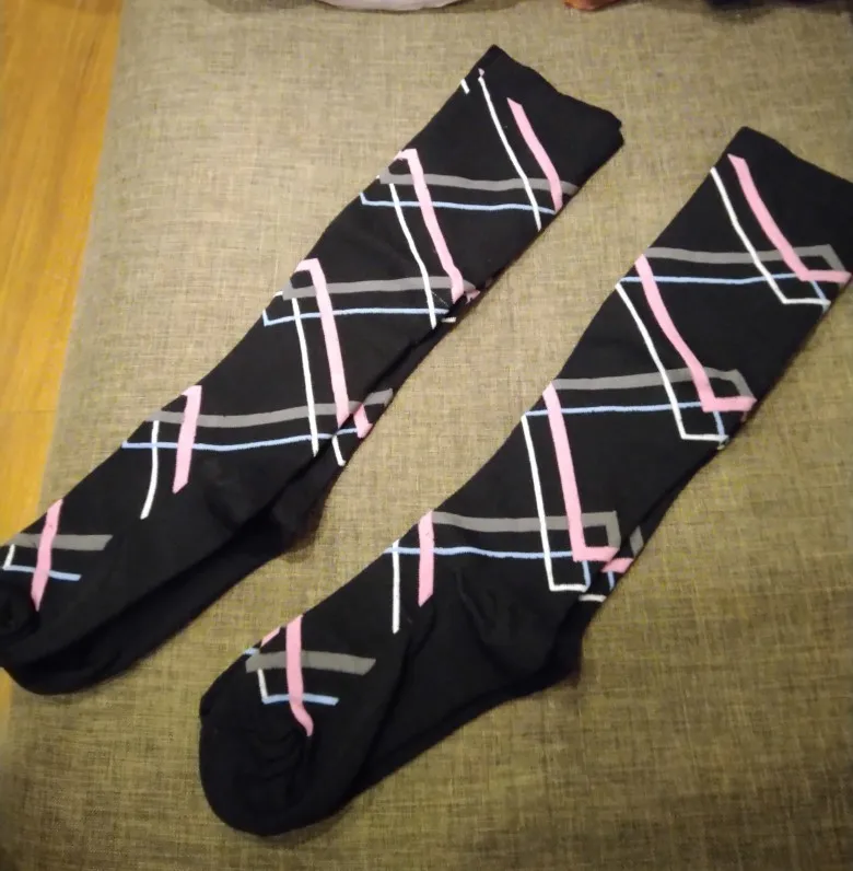 Чулки такие же, как на картинке, сначала компрессия средняя, я не знаю, будет ли стирка очень быстро или нет. Он прибыл примерно через 20 дней