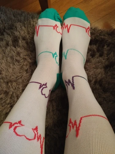 Очень доволен носками. Красиво и качественно Very fast shipping. Я все еще должен попробовать их во время работы в больнице, чтобы увидеть отдых ног, и если они звучат ногами. Я оставлю еще одну оценку позже