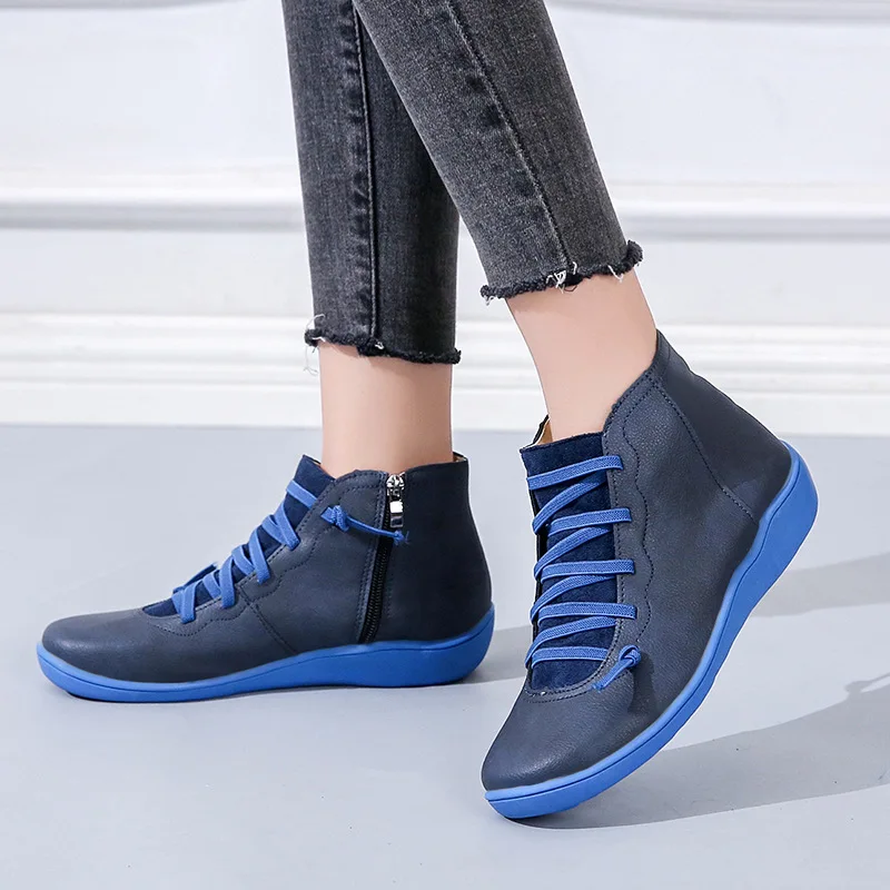 Женские повседневные кожаные ботинки на плоской подошве в стиле ретро, ботинки на шнуровке с боковой молнией и круглым носком