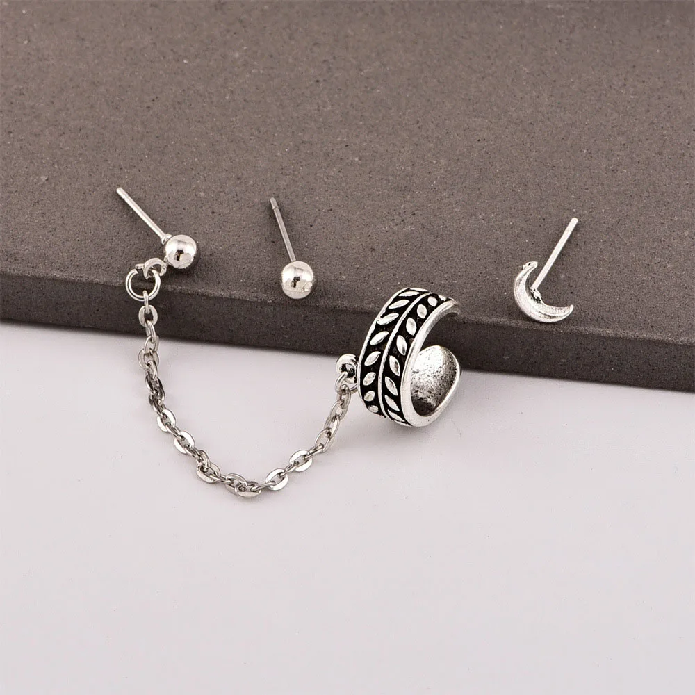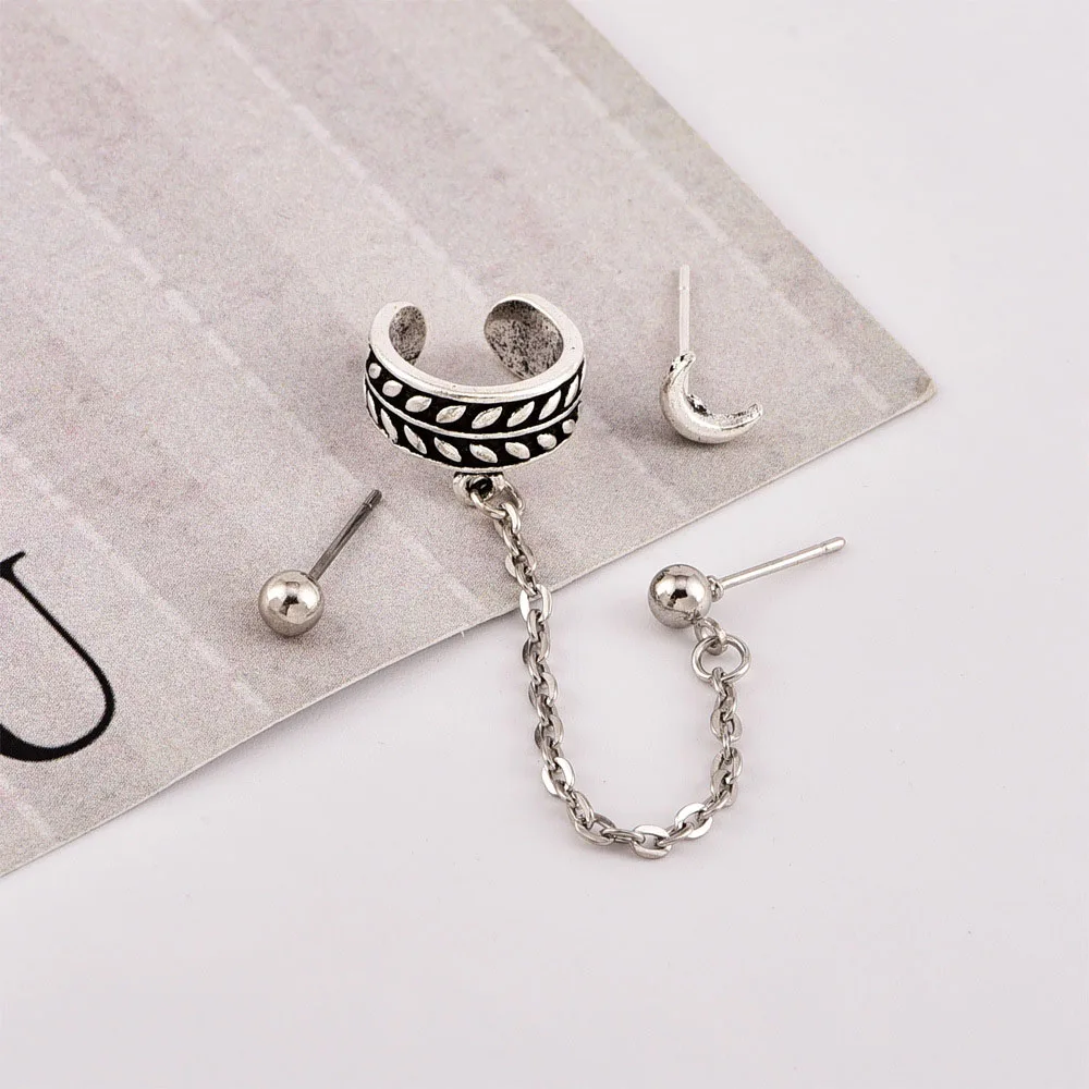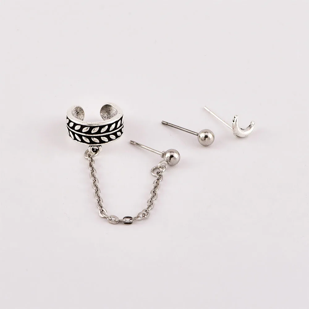 3 шт.компл. простой Старинный Лист Луна шарик цепочка серьги-подвески комплект серьги с подвесками из сплава пирсинг для женщин ювелирные изделия