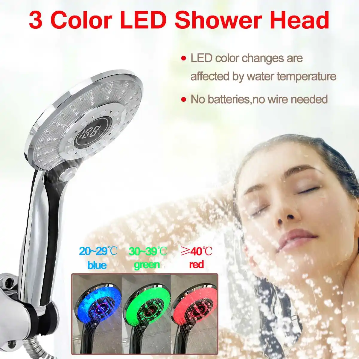 Цифровой ЖК-дисплей, регулируемый 3 режима, 3 цвета, светодиодный светильник с плакировкой, насадка для душа, датчик температуры, ванна, спринклер, ванная комната Промокод: NEZABIVAYMASKU Скидка 150 рублей при зака