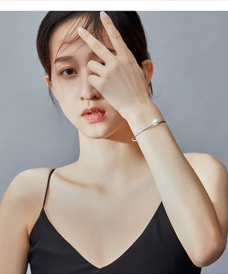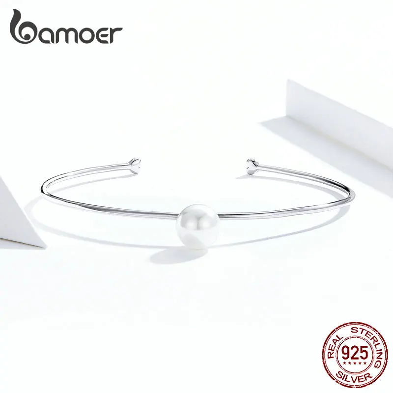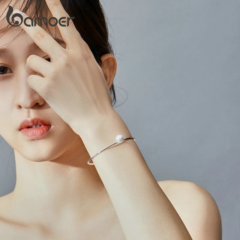 Женский браслет с жемчугом bamoer, простой минималистичный браслет из серебра 925 пробы, ювелирное изделие класса люкс, SCB168