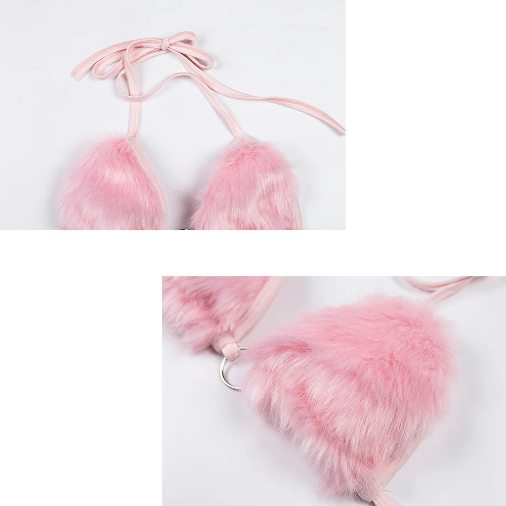 Сексуальные женские меховые бюстгальтеры розового цвета, женский укороченный топ, женское нижнее белье