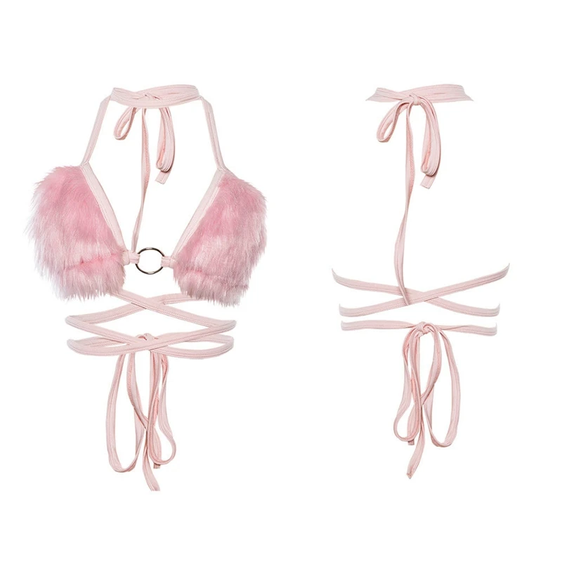Женский пикантный треугольный бюстгальтер на шнуровке, Пушистый Плю...
