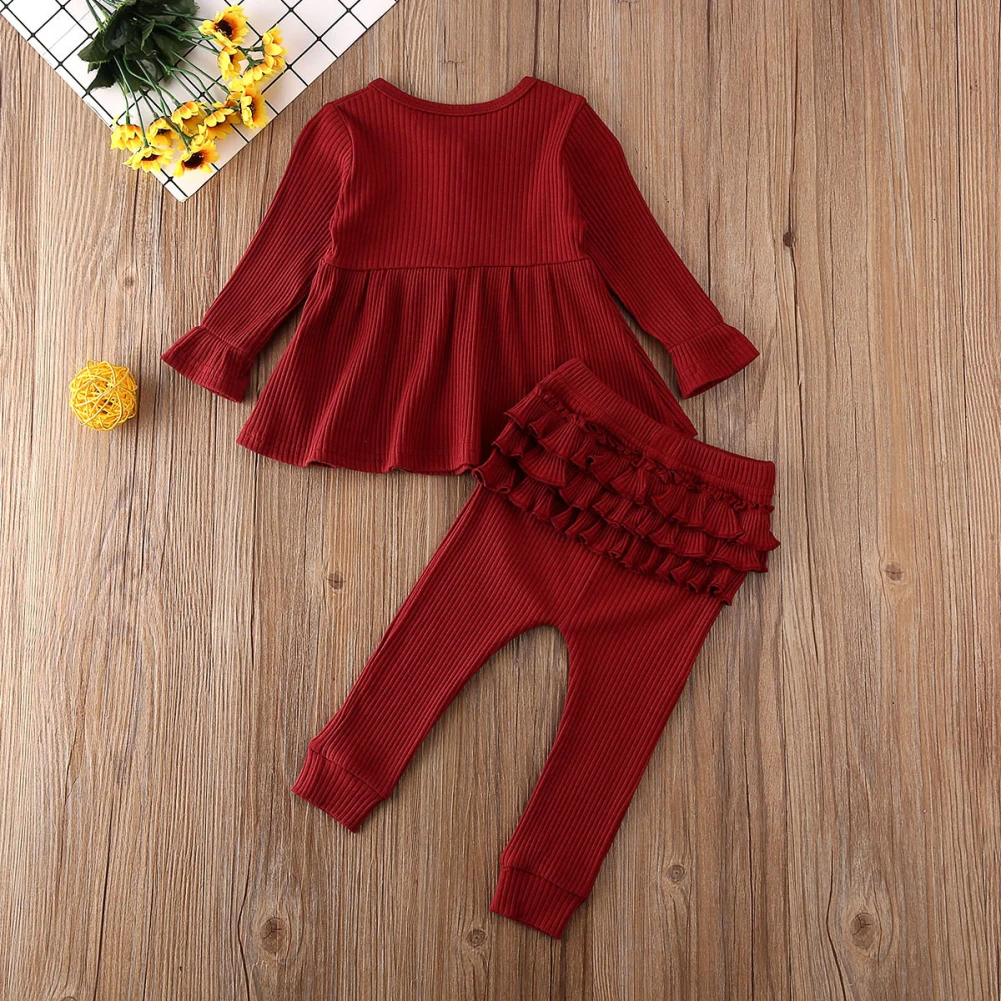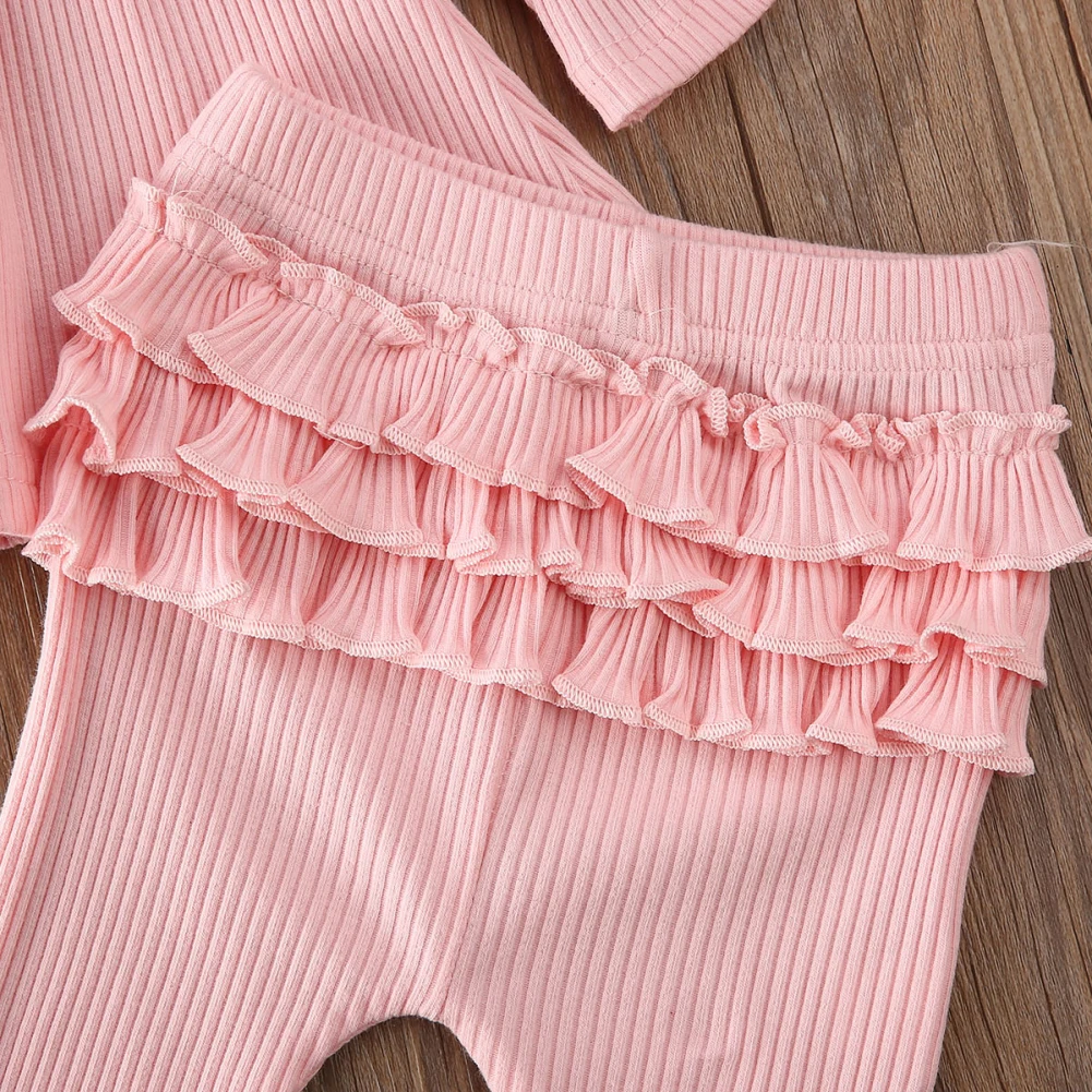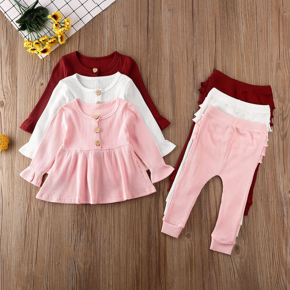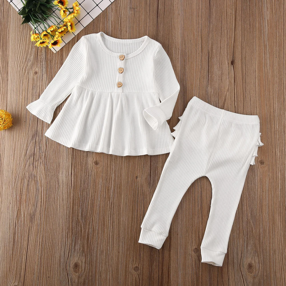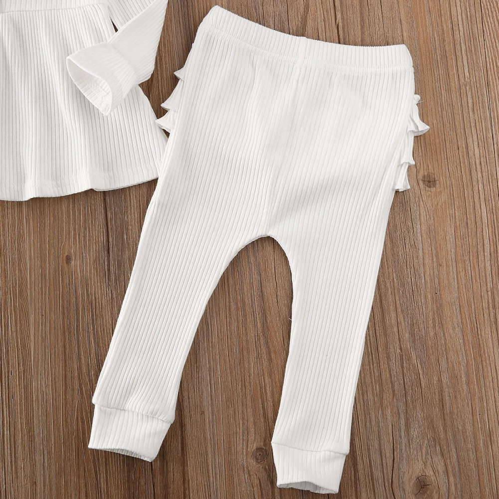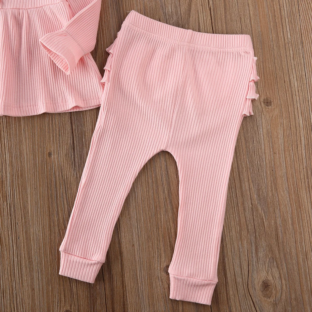 Комплект одежды для маленьких девочек и мальчиков, однотонный трикотажный топ с длинным рукавом и леггинсы с оборками, комплект одежды