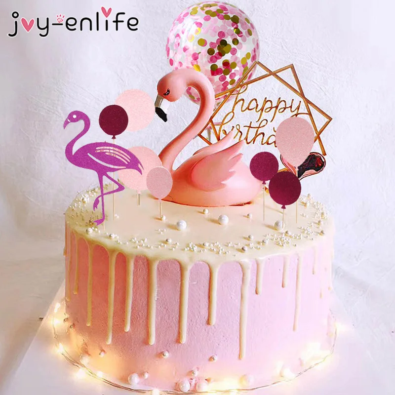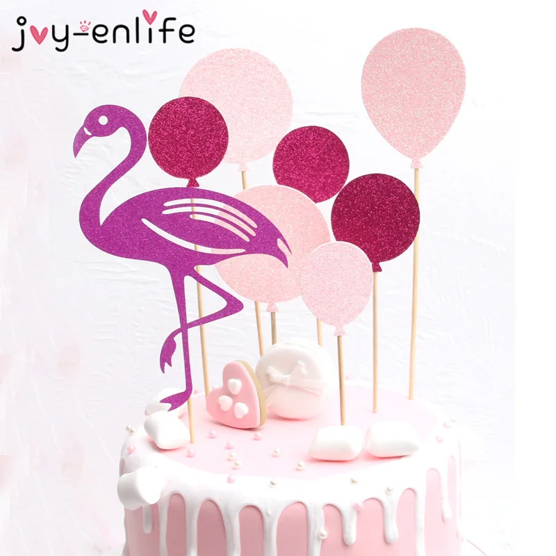 Розовый Фламинго, топпер для торта, воздушные шары, флажки для торта, на день рождения, Детские сувениры, декорирование тортов капкейк, топпер для свадебного десертного стола, Декор