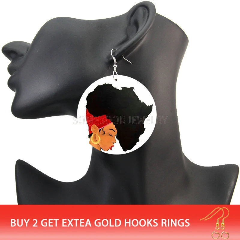 SOMESOOR меланин поппин королева вьющиеся деревянные висячие серьги...