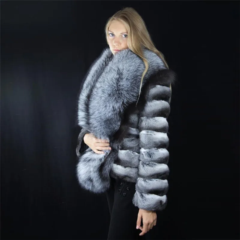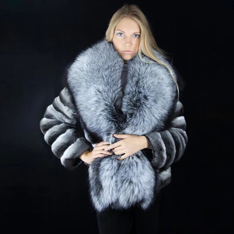 Женское зимнее пальто с большим воротником из Меха чернобурки