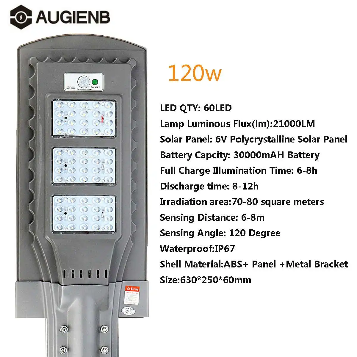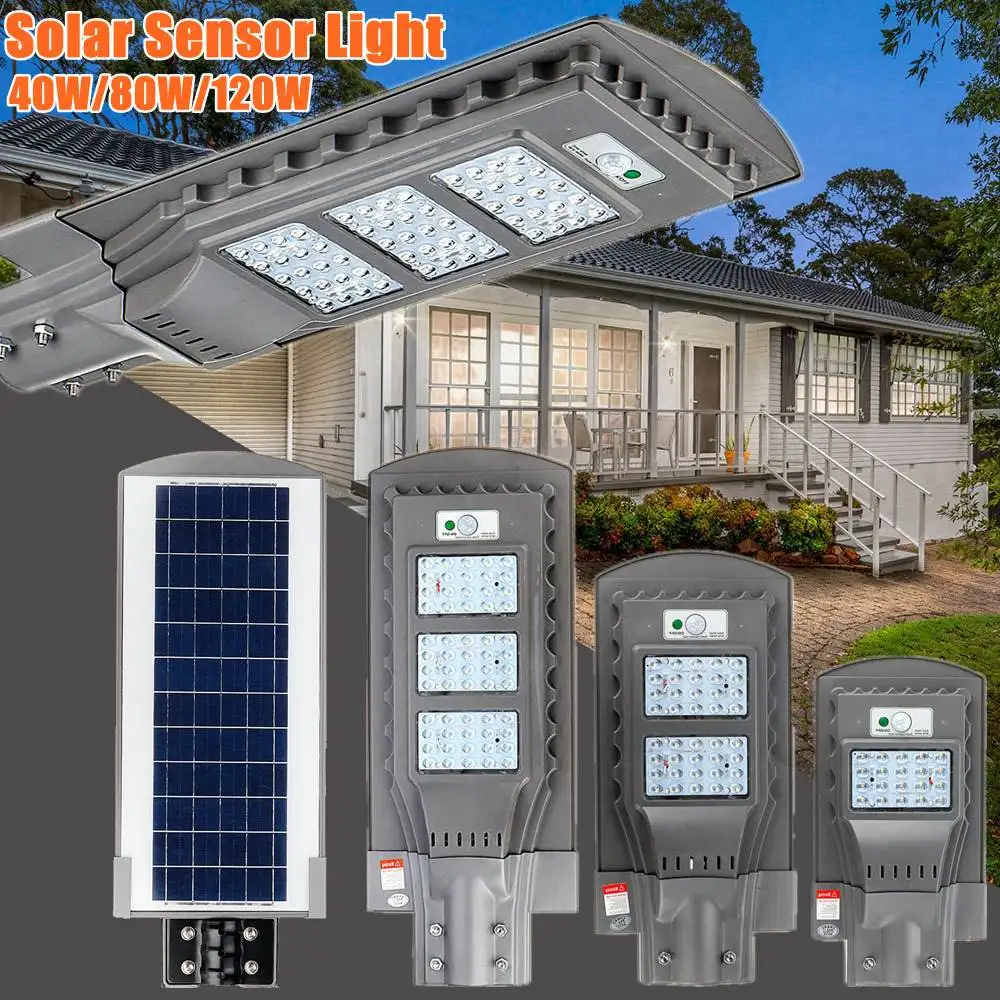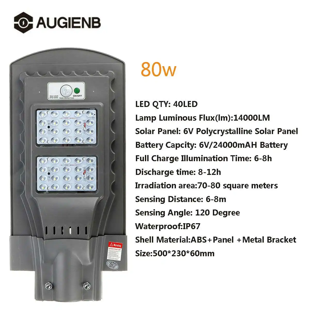 AUGIENB 40 Вт/80 Вт/120 ВтСолнечный уличный светильник20/40/60LEDНаружные солнечные светильники IP67Водонепроницаемый солнечный светильник с датчиком движения от заката до рассвета, светильник безопасности для двора, сада, улицы, баскетбольной площадки, желоба