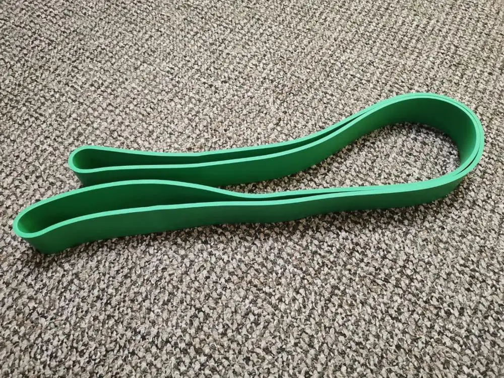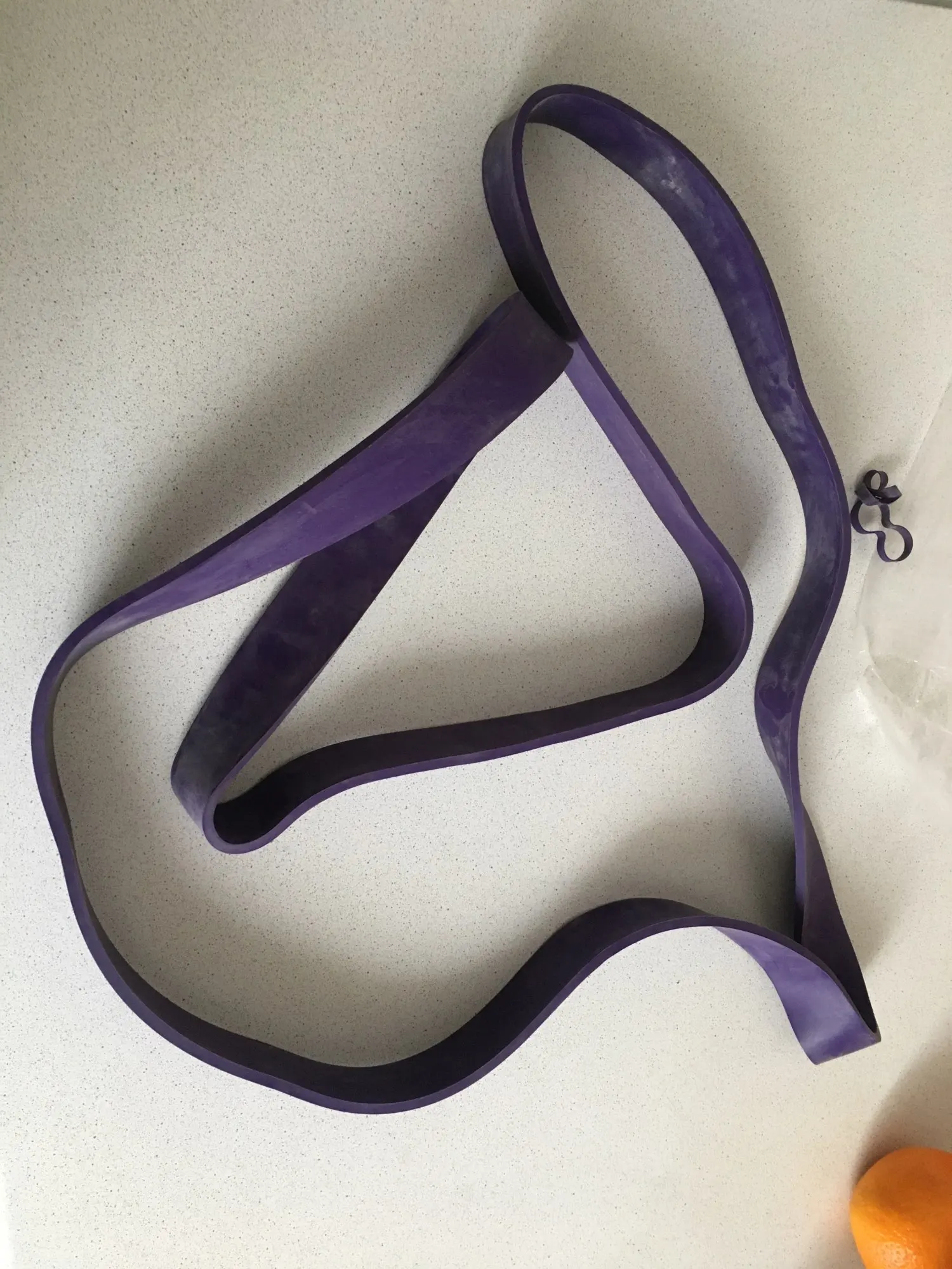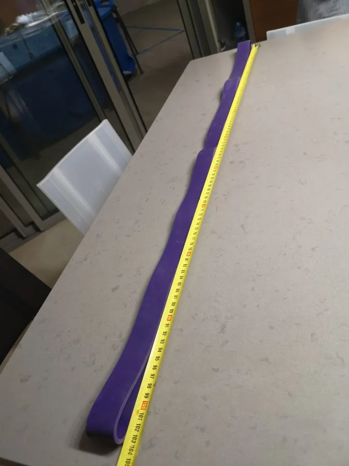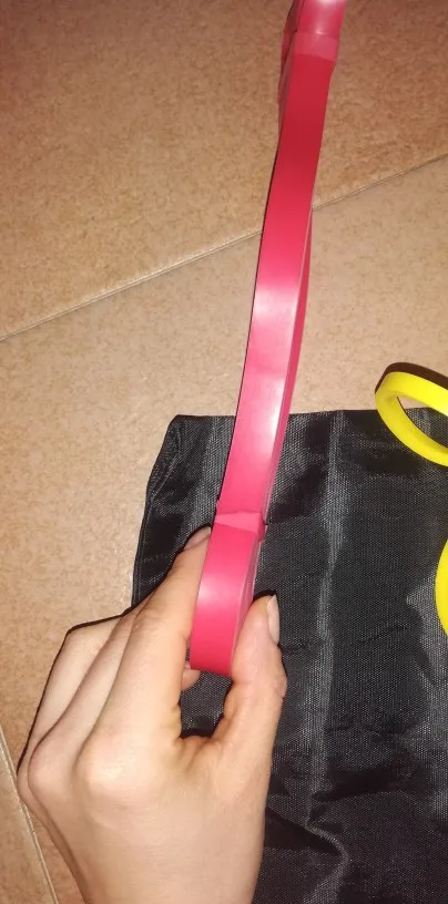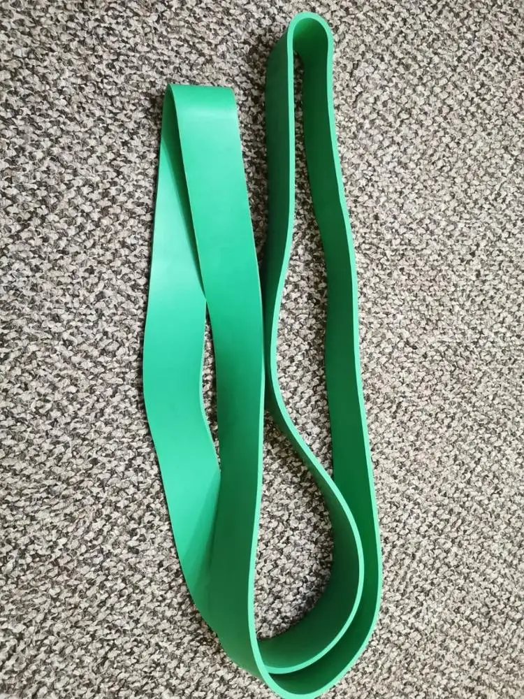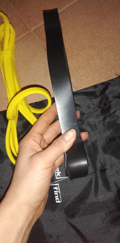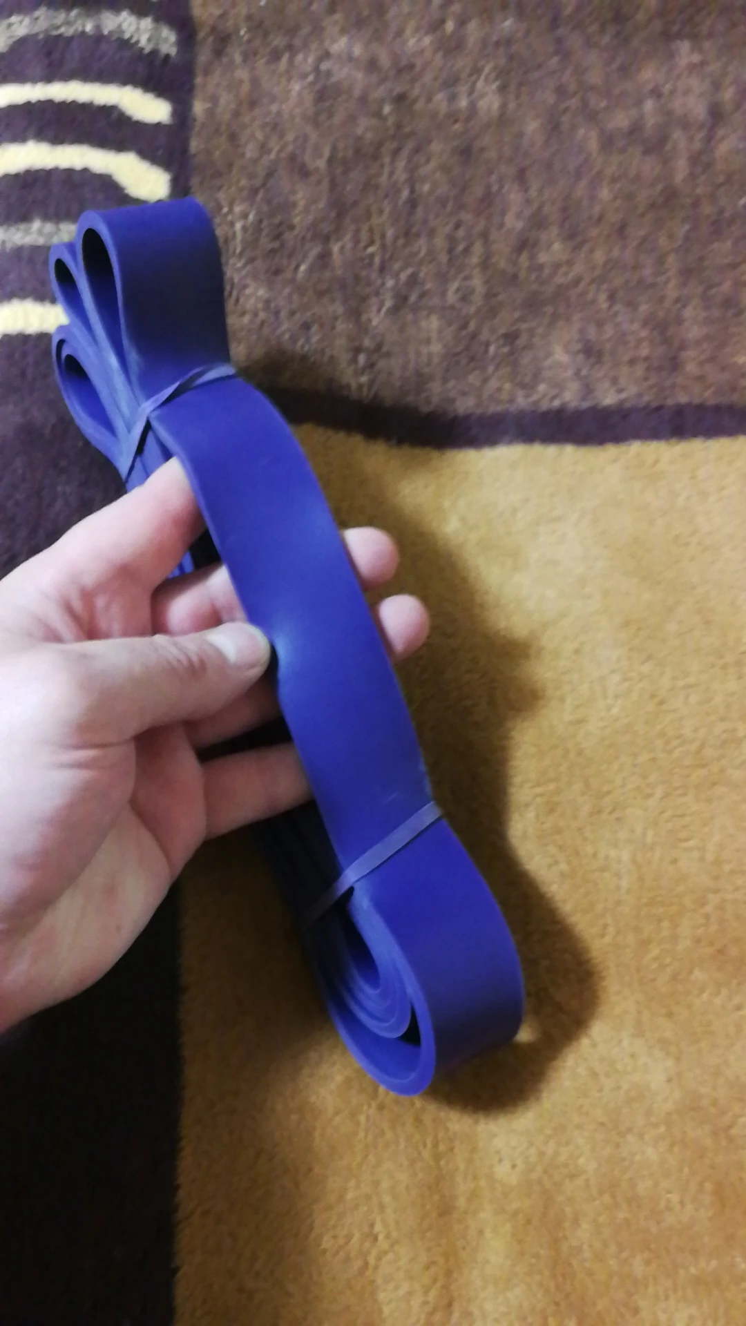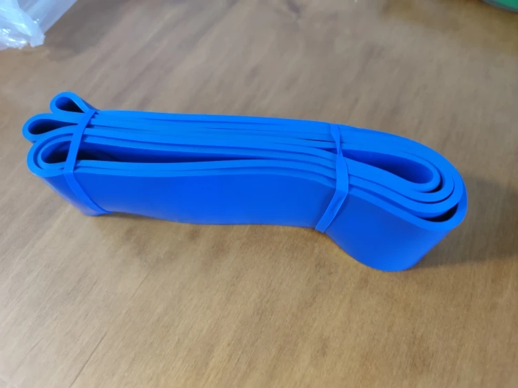 Резинка соответсвует описанию. Прочная. Выдерживает разный вес. Для подтягиваний самое оно. Следом буду фиолетовую брать.