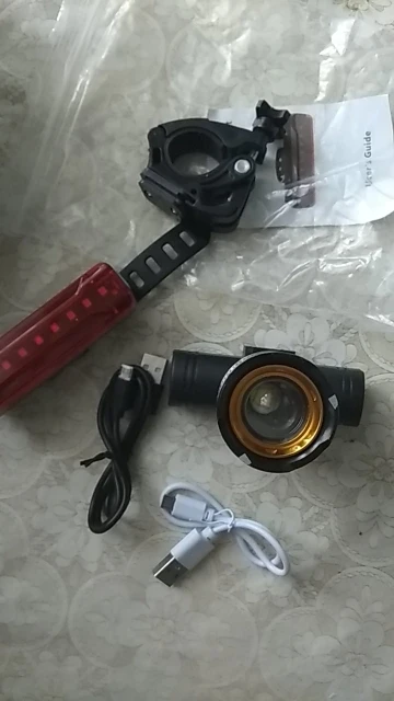 Фонари хорошие, светят ярко, переднее фокусированным пятном, регулируется влево вправо, расширить пятно сузить, заднее несколько режимов, крепиться на резиновый ремешок, держится вроде крепко, но все же мысль что улетит в голове постоянно имеется. После двух поездок, решил направить вниз, надавил не сильно, в итоге передний фонарь отломился. Пластмасса которая держит линзу не лучшего качества, крошится типа эпоксидки, при разборке разложилась на несколько частей, вероятно уже была в трещинах (возможно холод и вибрация). Батарея типа 5000мАч, но мы то знаем что формат 18650 такой емкости не обладает) К продавцу претензий нет, можно сказать сам сломал. Будьте аккуратнее не давите на него)