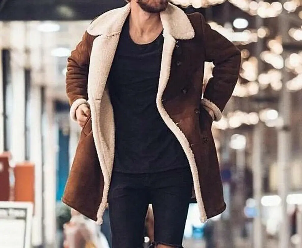 Тренчкот мужской, зимний, теплый, ветрозащитный, меховой, флисовый, длинное пальто с лацканами, теплая пушистая куртка, верхняя одежда, размера плюс