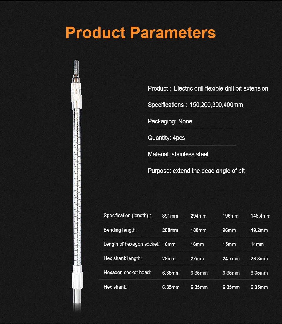 JelBo металлический гибкий вал, удлинительная отвертка, держатель, универсальное соединение для электроинструментов 150 мм 200 мм 300 мм 400 мм