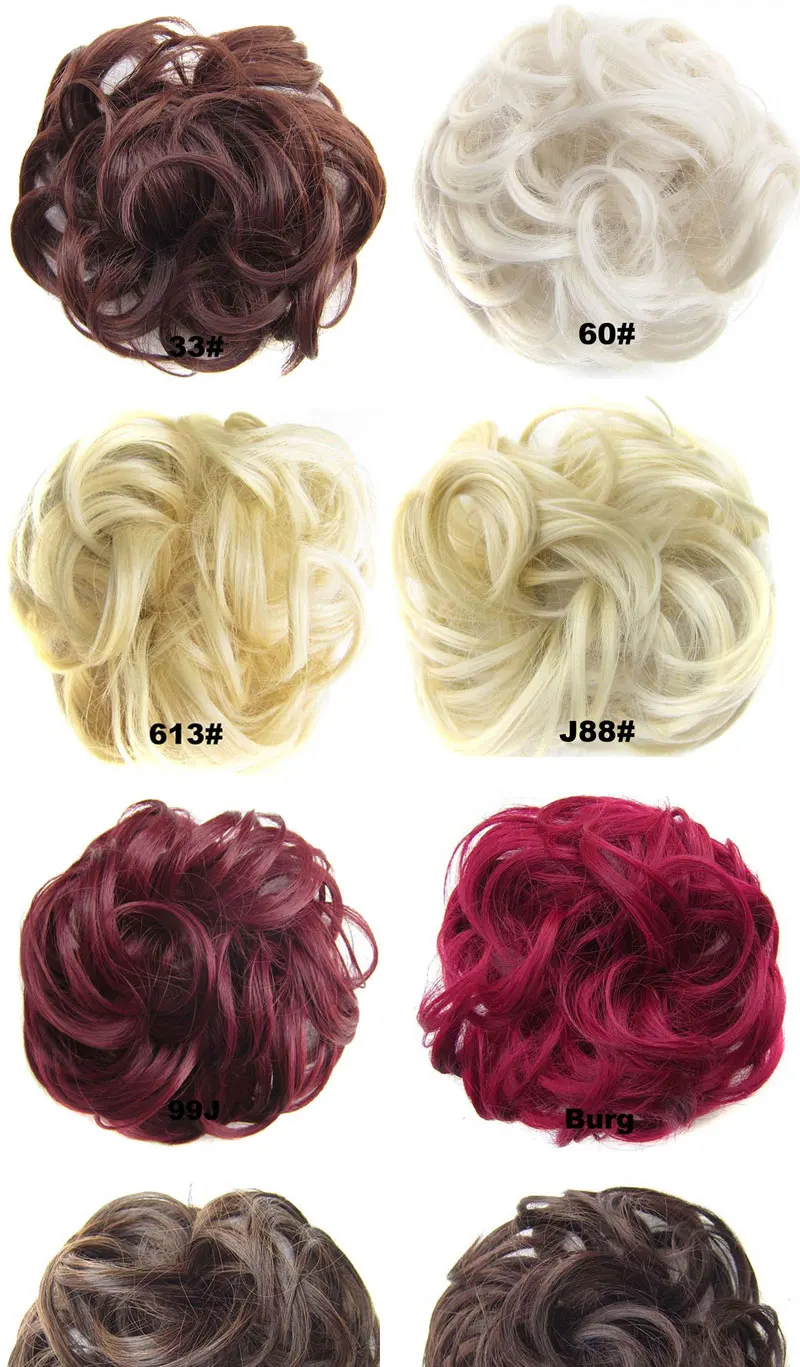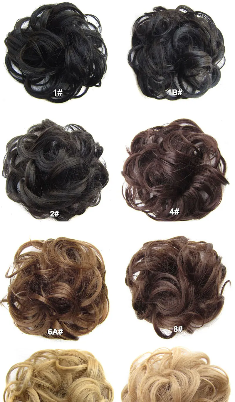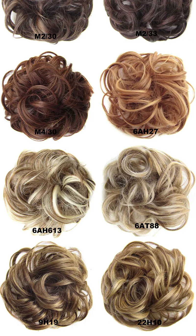 Синтетический гибкий эластичный женский грязный пучок для волос черно-коричневый блонд кудрявый шиньон для волос