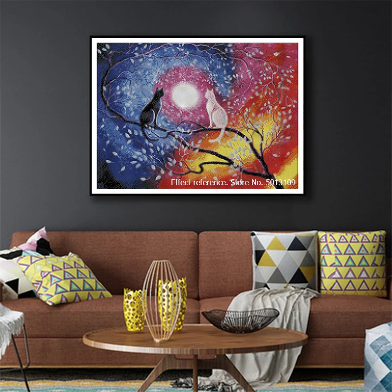 Алмазная живопись 5D сделай сам с изображением кота, дерева, Луны, животных из мультфильмов, круга, квадрата, полная вышивка, вышивка крестиком, домашний декор