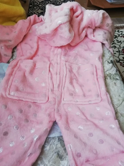 Очень быстрая доставка, за 18 дней. Пижама мягкая, и немного торчат нитки, но это не критично. На рост 87 с приличным запасом.
