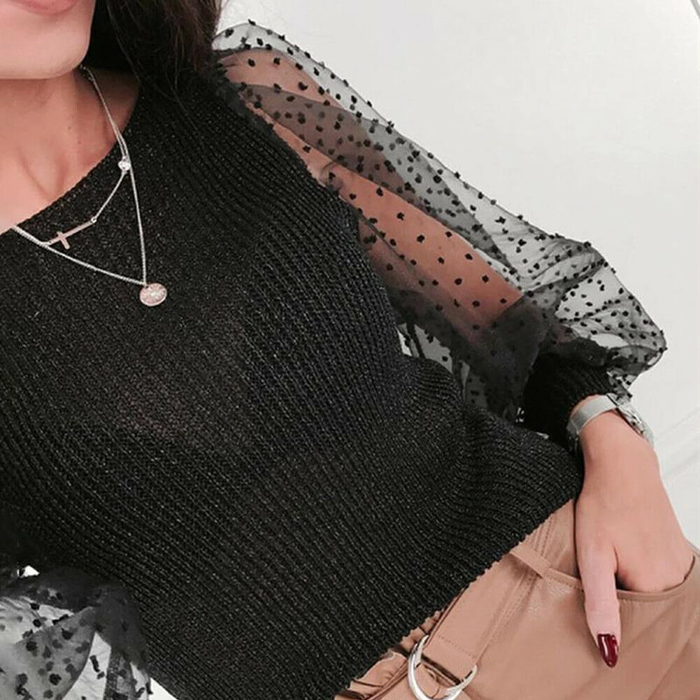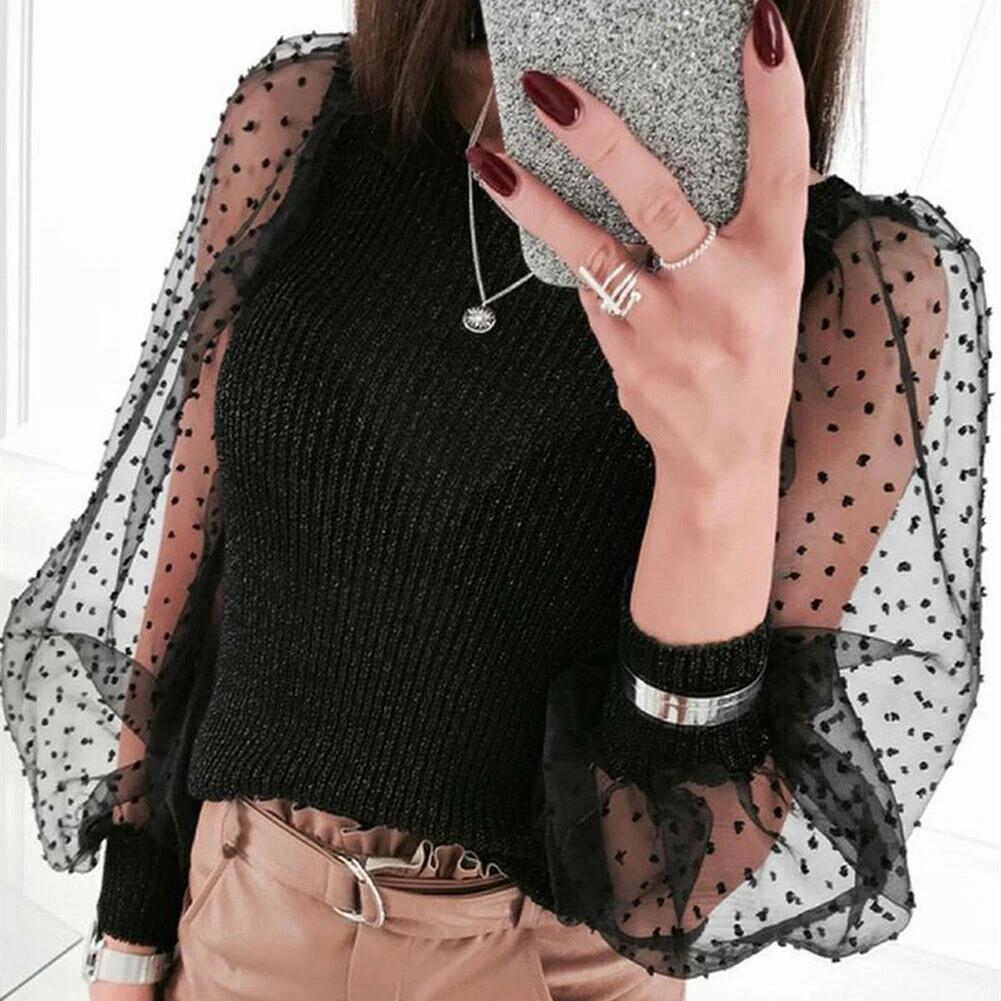 Женский вязаный сетчатый свитер с буфами и длинным рукавом, топы, Женский облегающий пуловер, свитеры, джемпер, женская модная винтажная трикотажная одежда, пуловер, Топ