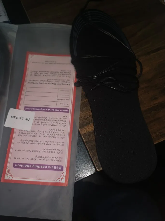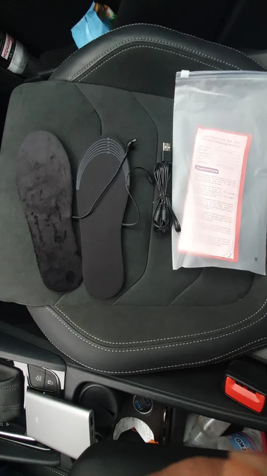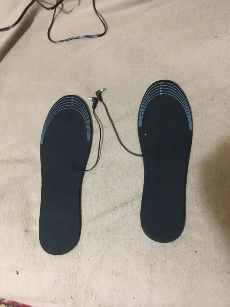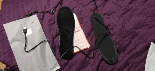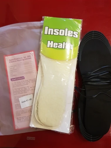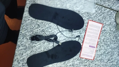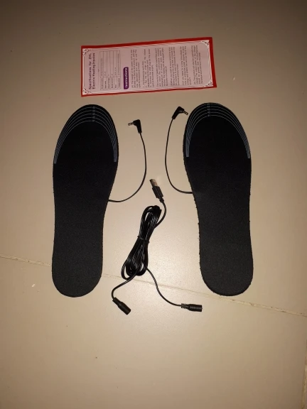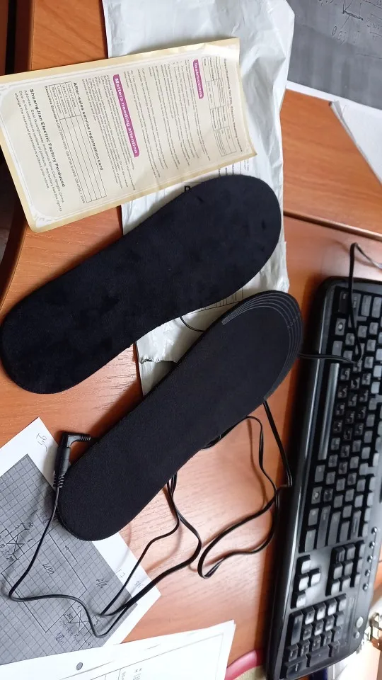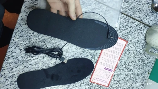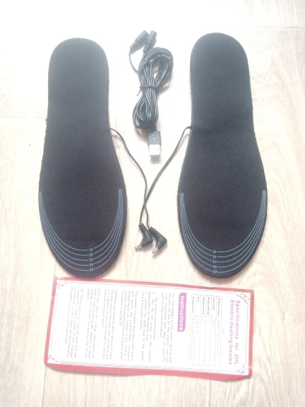 Заказывал сразу 2 комплекта. Видимо поэтому положили сувенир, белые тёплые стельки. Мелочь, а приятно. Читал в отзывах что обещали от 40 до 50 градусов, а греют только на 40. Я сегодня ходил на улицу, подключал на повербанк 2.1А. Нужно отключать через время, потому как ноги горят. Двоякое ощущение, когда везде прохладно, а ноги как на батарее. Возможно, потому что одни не тёплые носки. Не хватает обогрева на пальцах, как по мне, предпочтительнее было бы там. Как долго проработают, тяжело сказать. Но на зимнюю рыбалку, долгие прогулки и походы зимой - МАСТ ХЭВ! Нагревательные элементы примерно как на картинках в описании. За ту цену что купил, абсолютно оправданно.