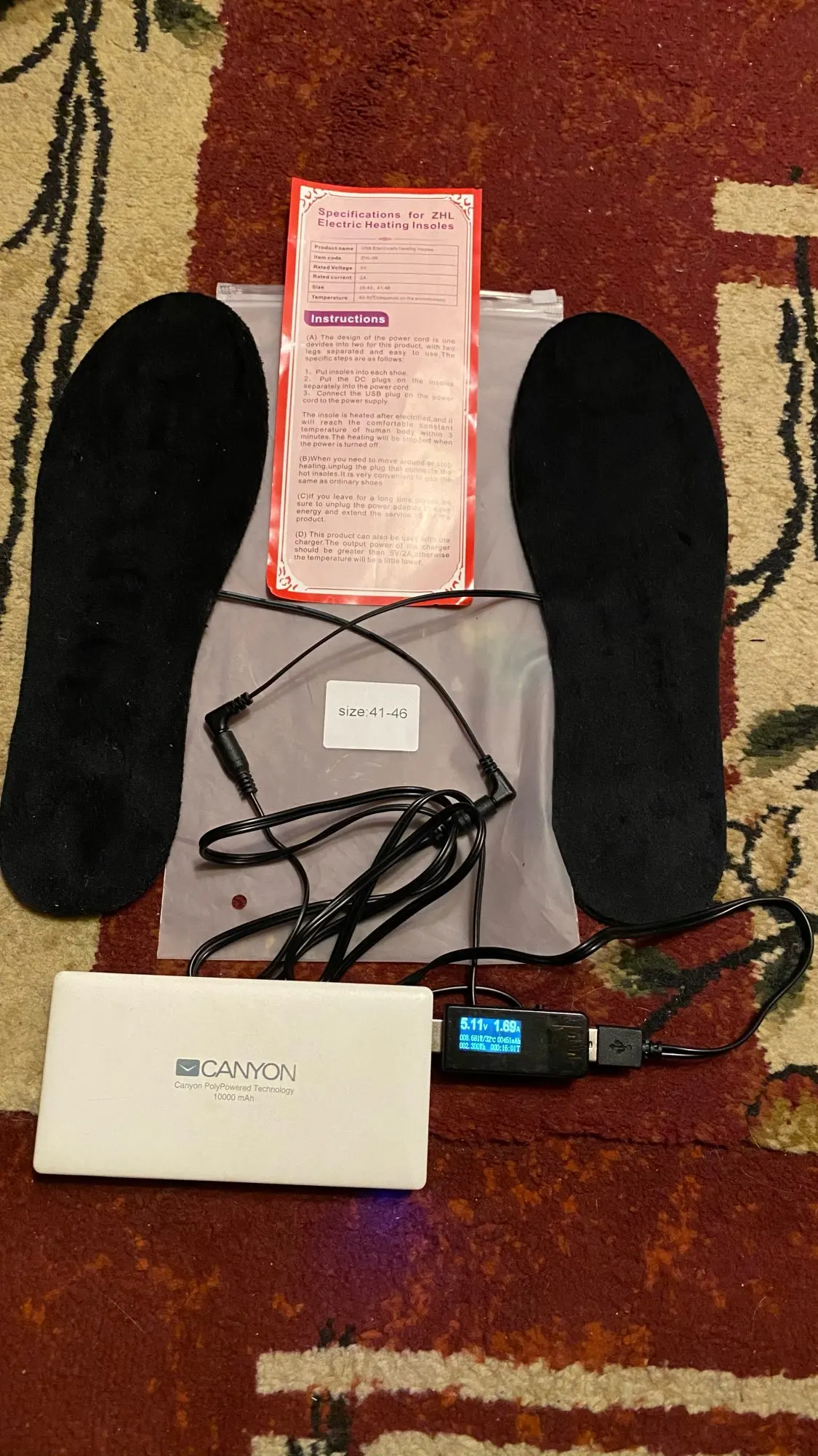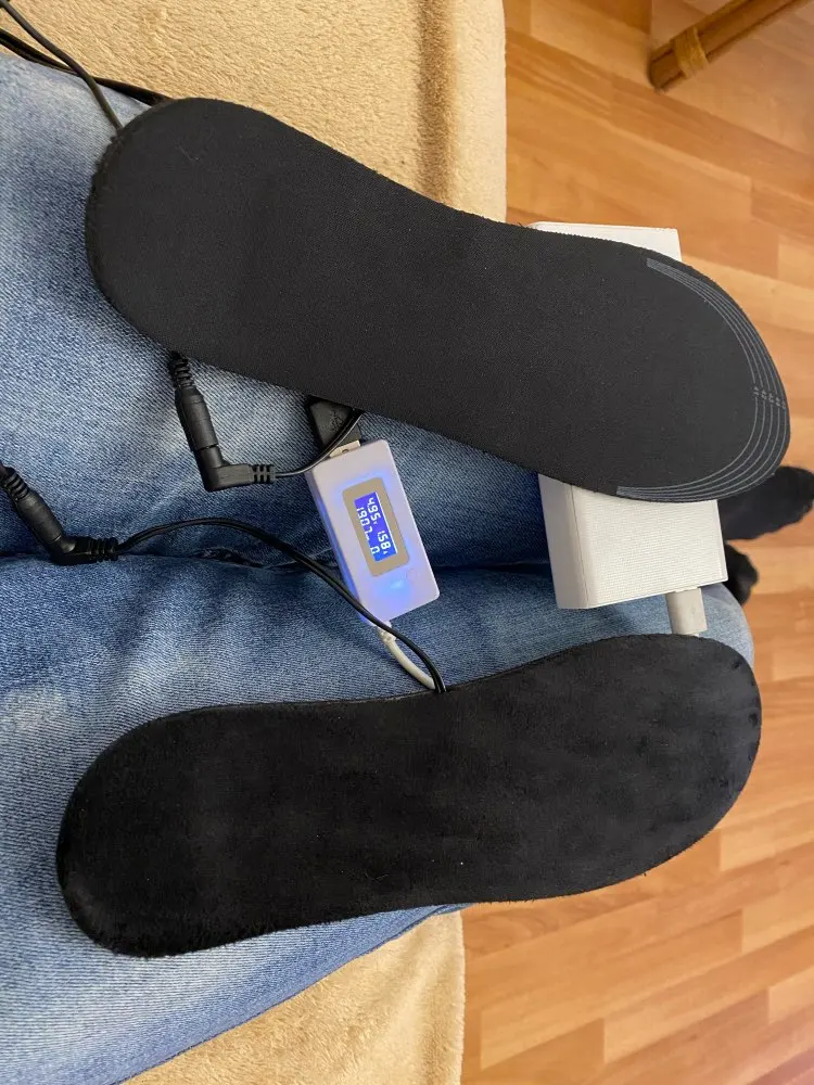 всё отлично, но вероятно несколько прожорливо ,- за время прогрева довольно таки мощный powerbank успевает ослабнуть на одно деление... что будет, если кроме стелек в ботинках иметь ещё и подогрев в рукавицах, а может и в жилетке... аккумулятор с чемодан?...