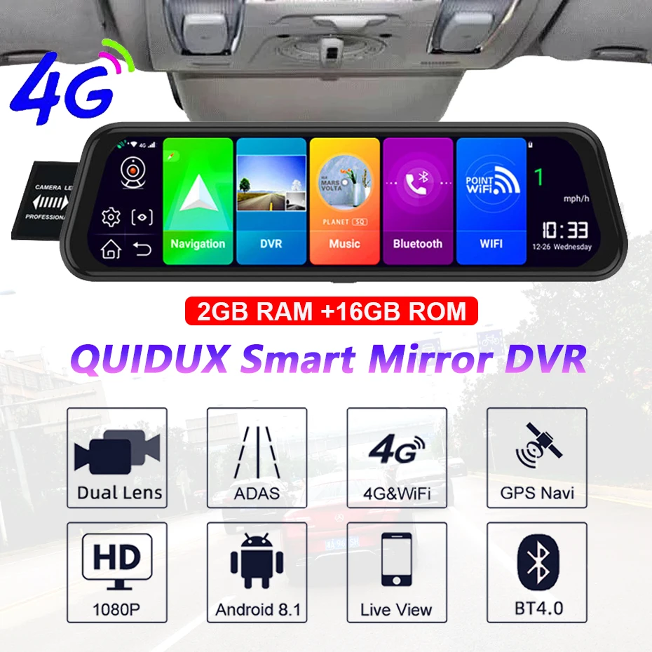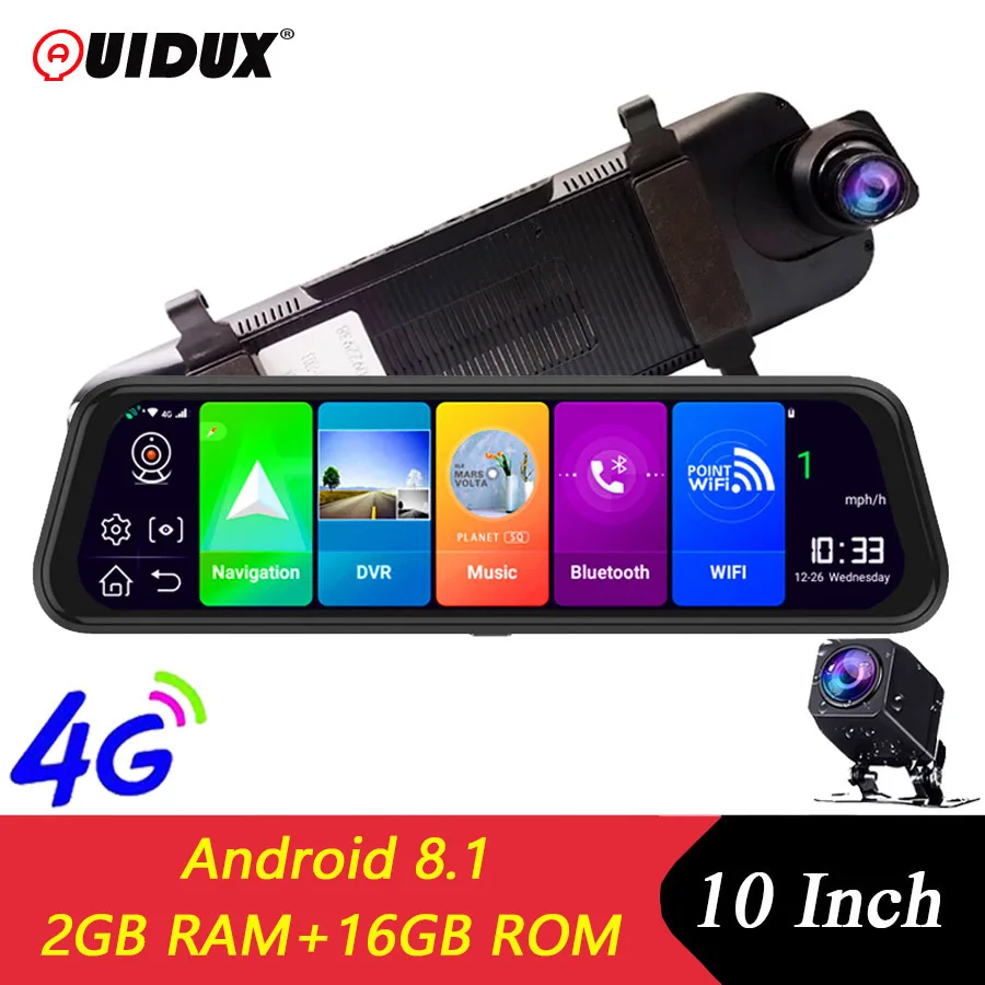 QUIDUX Видеорегистраторы для автомобилей GPS камера-навигатор 4G 10 "Android потоковый медиа-зеркало заднего вида Full HD 1080P GPS зеркало видеорегистратор Регистраторы 2 ГБ + 16 Гб