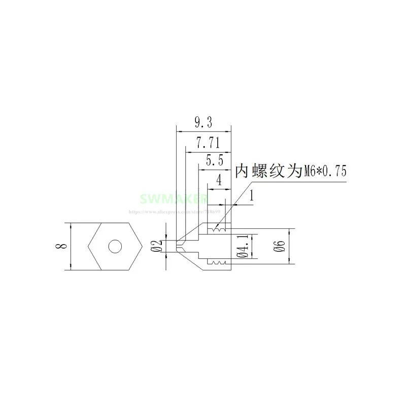 Внутренняя резьба: M6x0.75 (Пожалуйста, проверьте при заказе)