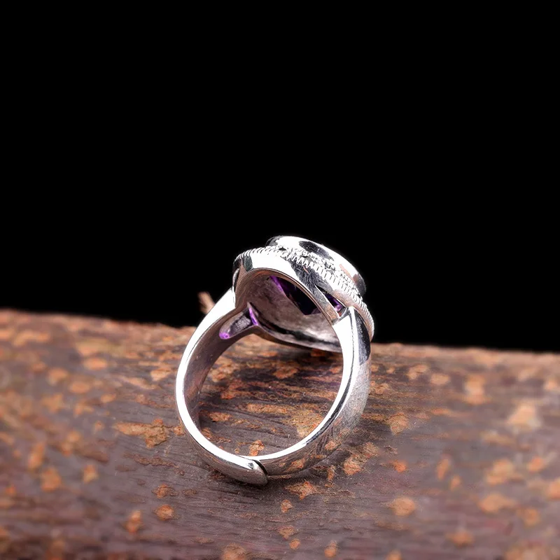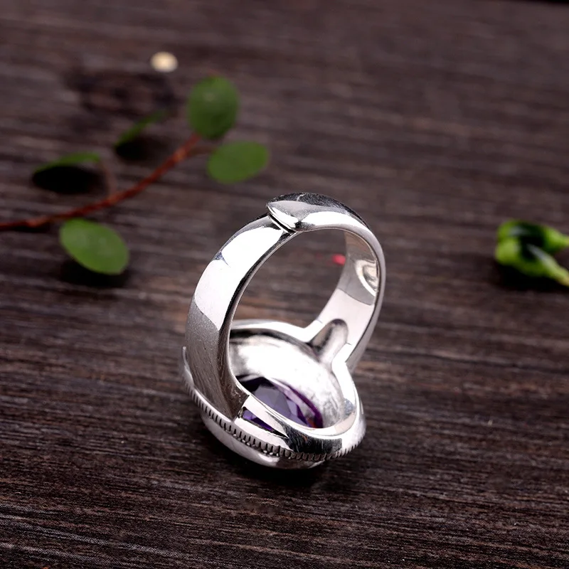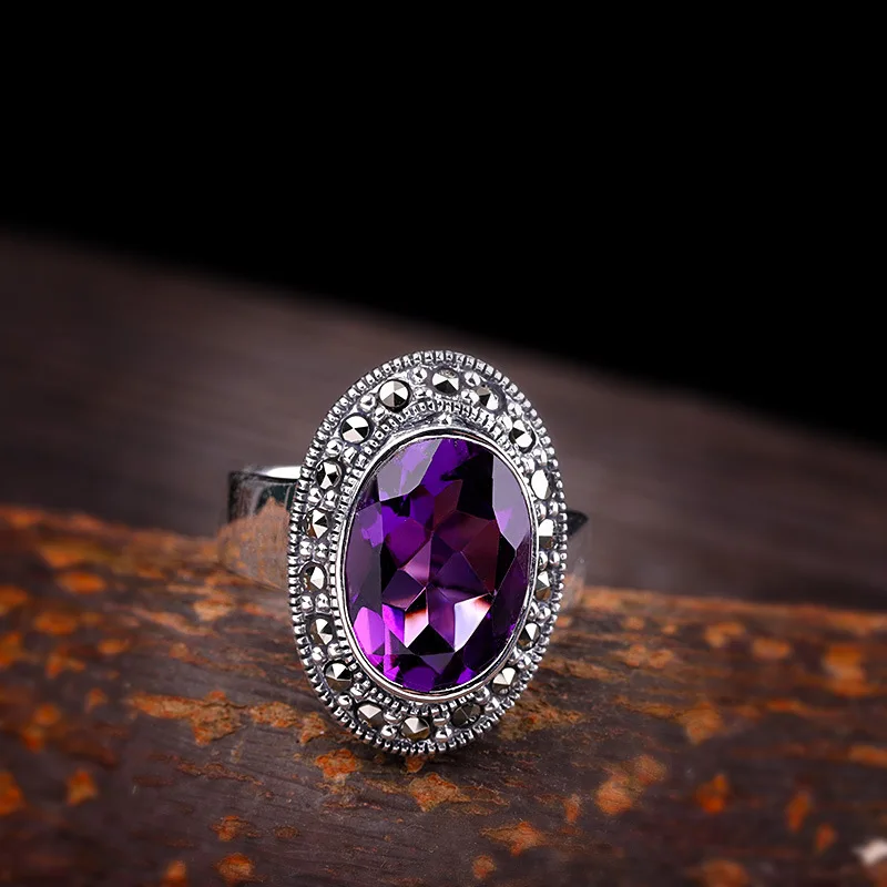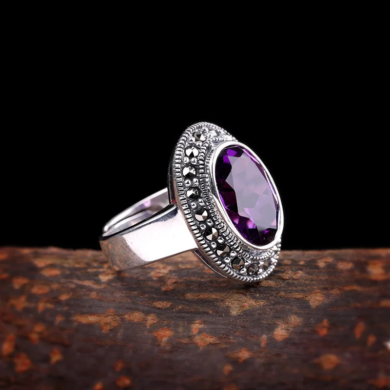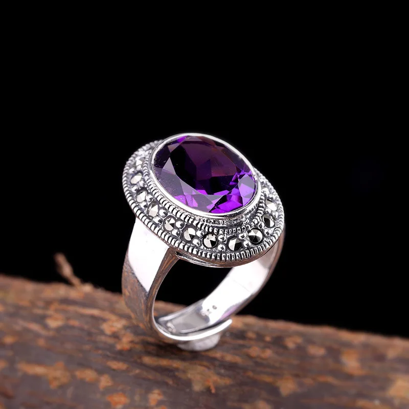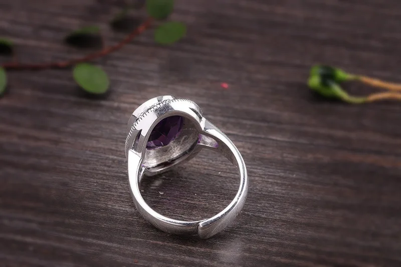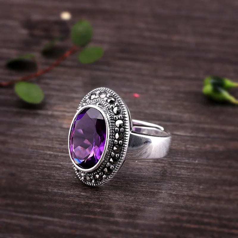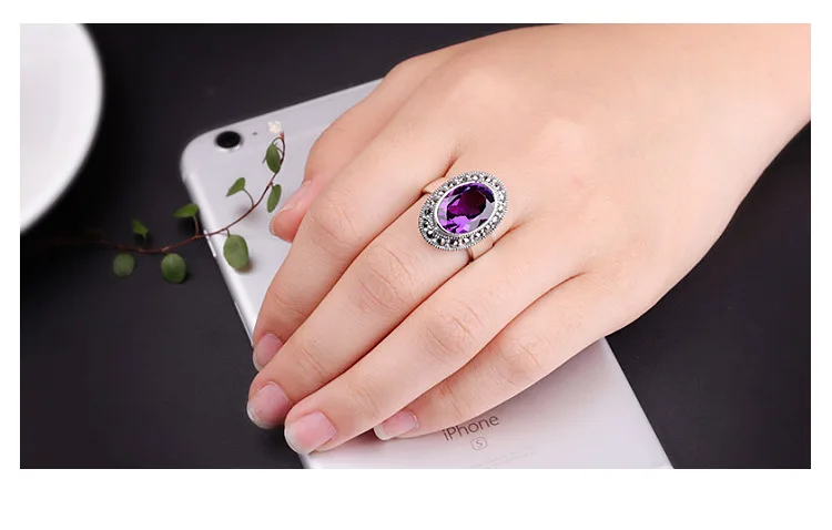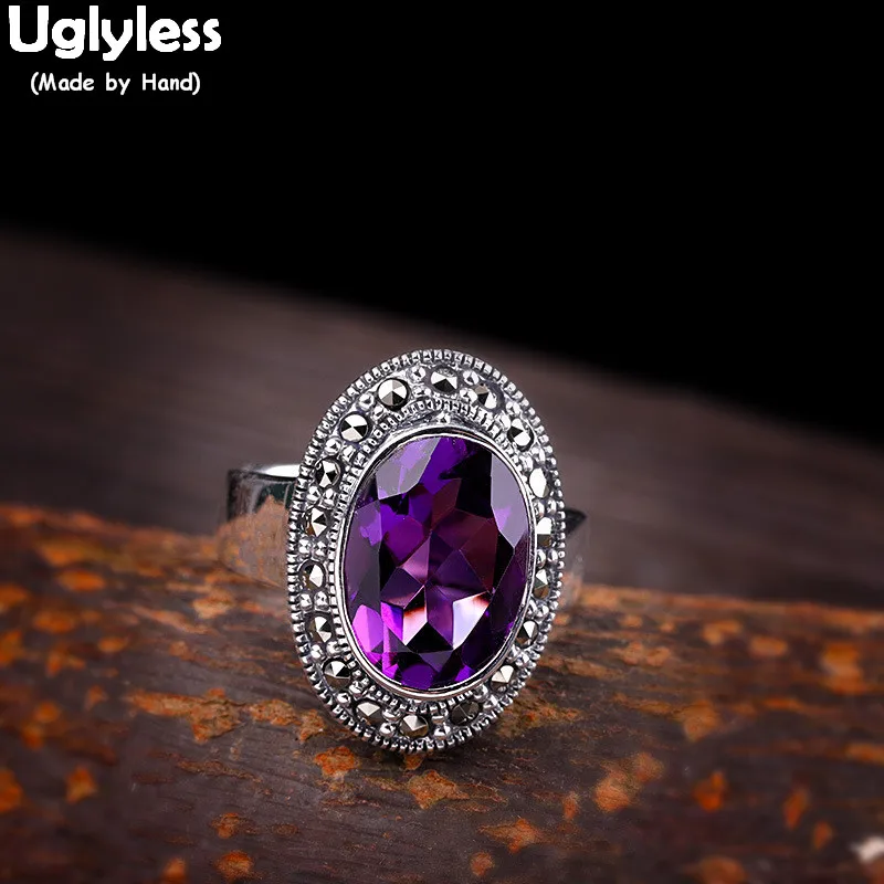 Uglyless Noble кольца с фиолетовыми кристаллами для женщин винтажное вечернее платье Открытые Кольца марказит овальные драгоценные камни Bijoux Fine Jewelry R876