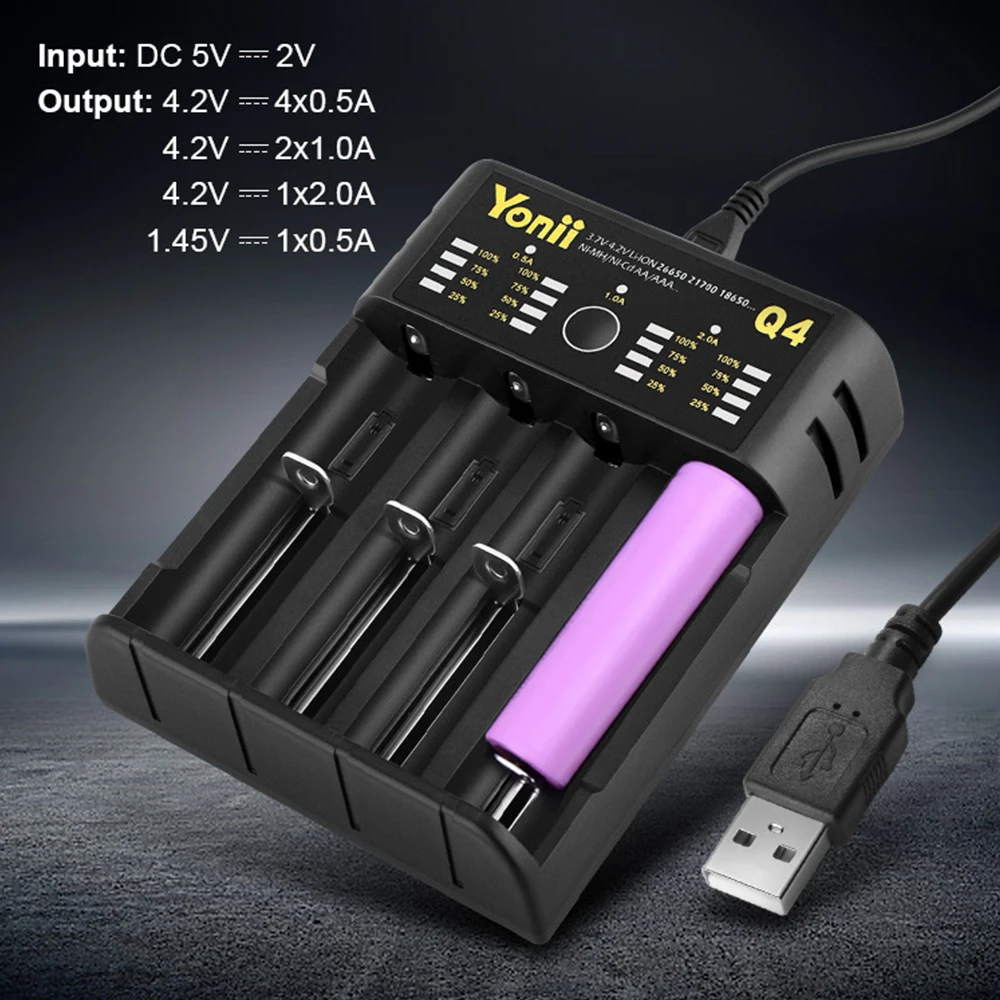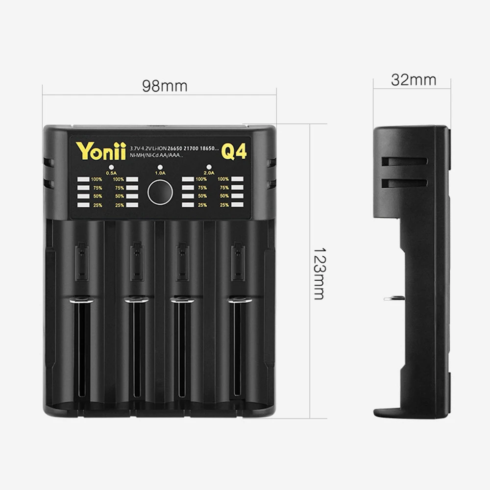 Зарядное устройство YONII 3,7 в для литиевых аккумуляторов 18650, 4 слота, светодиодное зарядное устройство для литий-ионных аккумуляторов 3,7 в, 14500, 18500, 17335, для никель-металлогидридных аккумуляторов aa