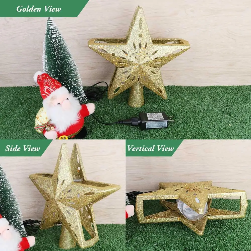 1. Форма декора звезды, очень винтажная и традиционная. Подарите яркое теплое сияние вашей елке. Блестящее Сверкающее с золотыми блестками, которое обязательно добавит блеска в ваш праздничный декор.