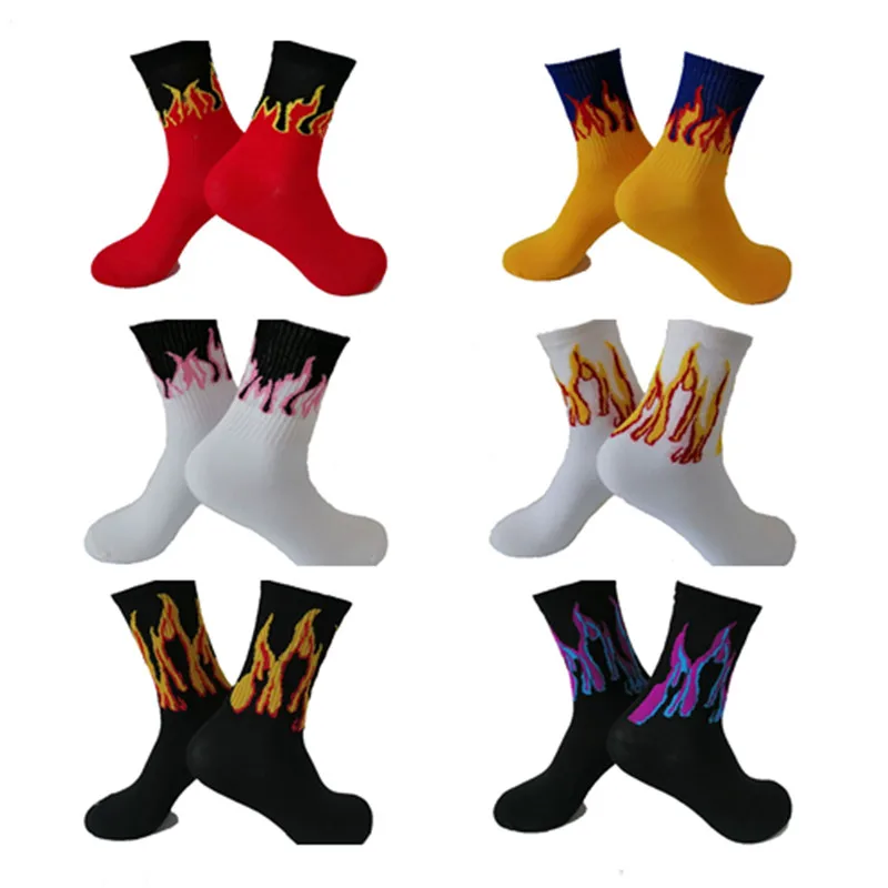 Носки мужские в стиле Харадзюку, Модные цветные хлопковые теплые уличные Skarpetki в стиле хип-хоп, с рисунком огня, ффонарь, Красного пламени, скейтборда